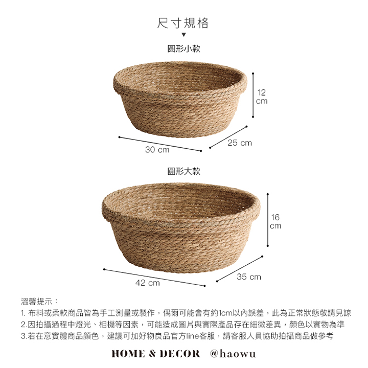 圓形大款42x35x16cm、方形大款30x35x12cm