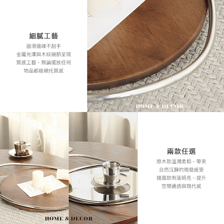 • 細膩工藝-圓滑邊緣不刮手,金屬光澤與木紋細節呈現質感工藝,無論擺放任何物品都能襯托質感。