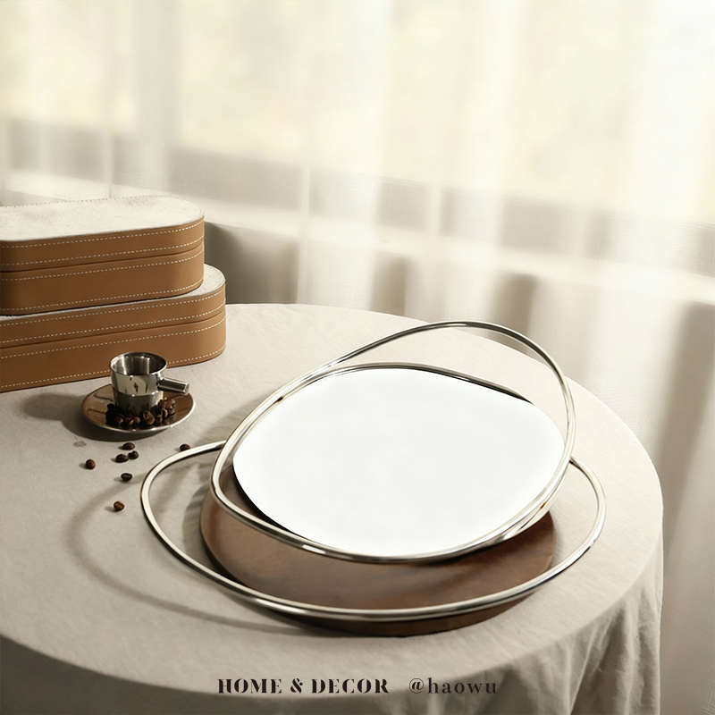 304不銹鋼原木鏡面擺飾配件咖啡托盤