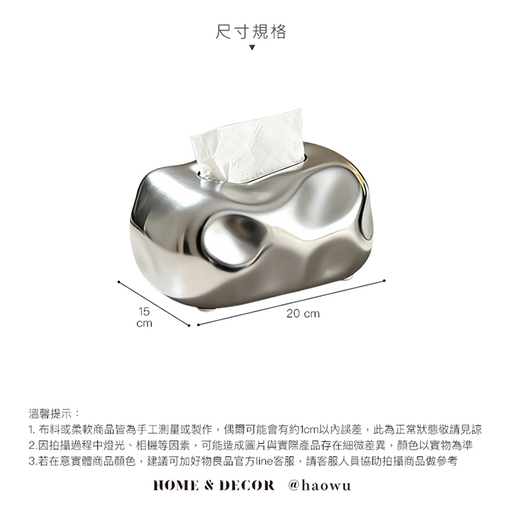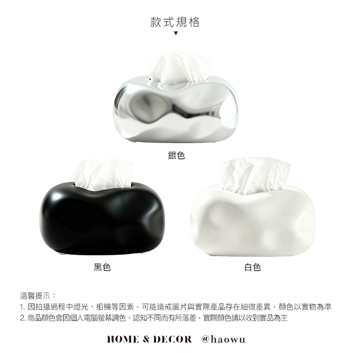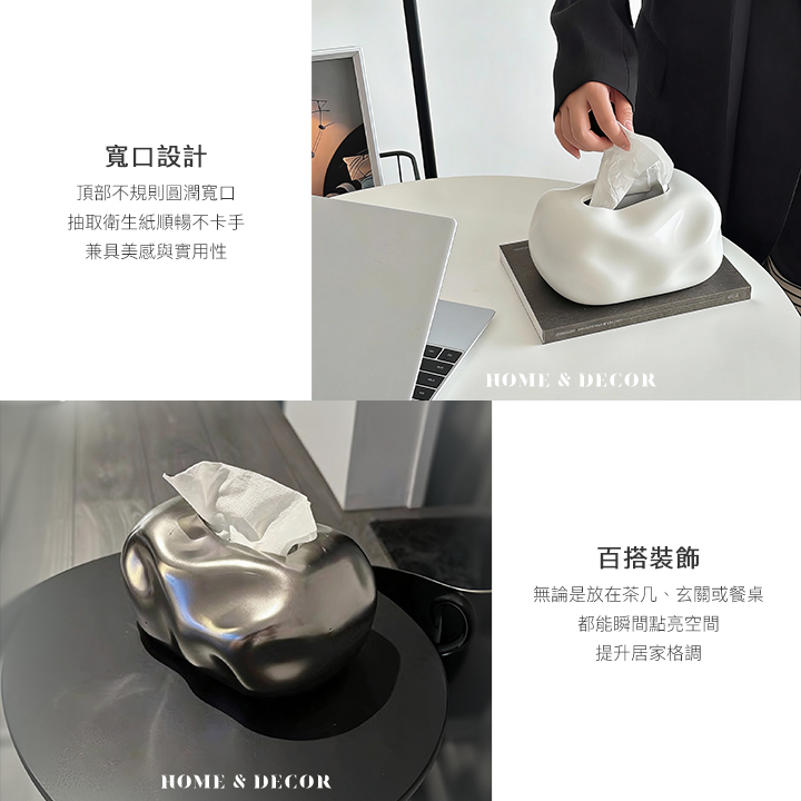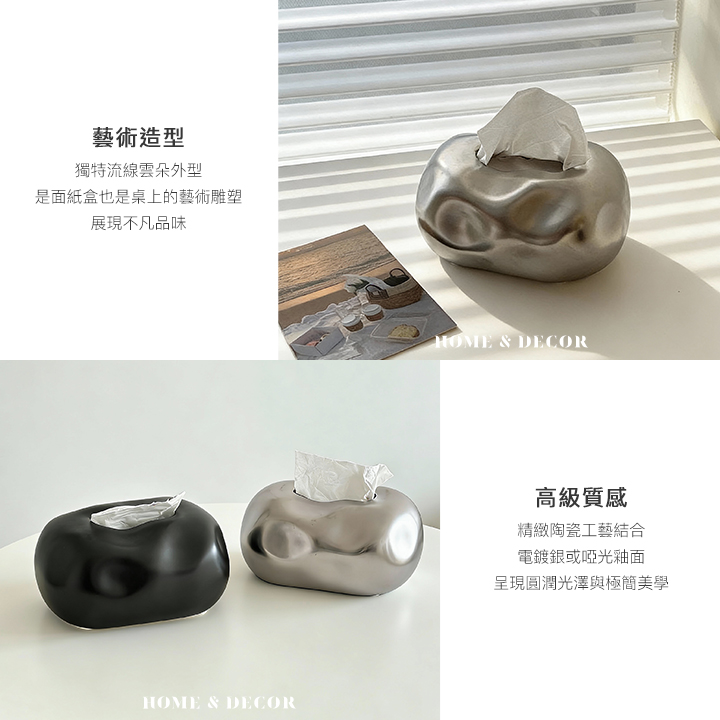 • 藝術造型:獨特流線雲朵外型,是面紙盒也是桌上的藝術雕塑,展現不凡品味。