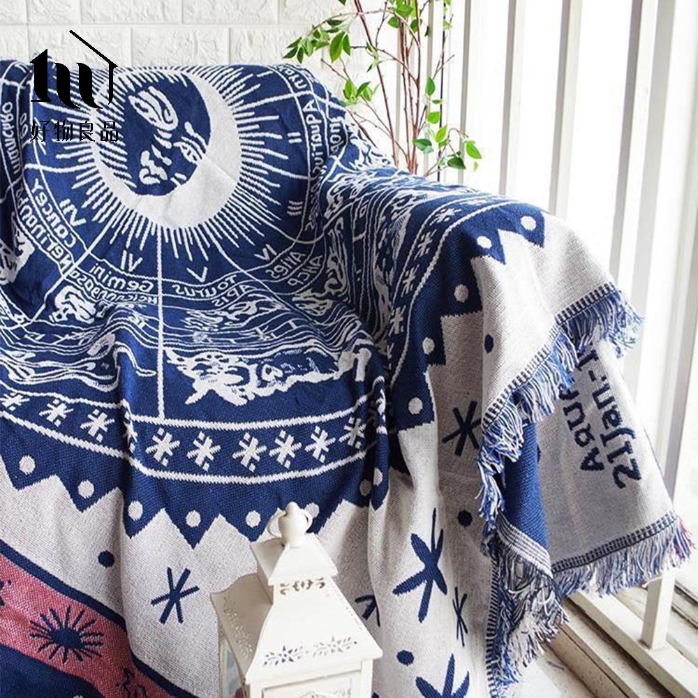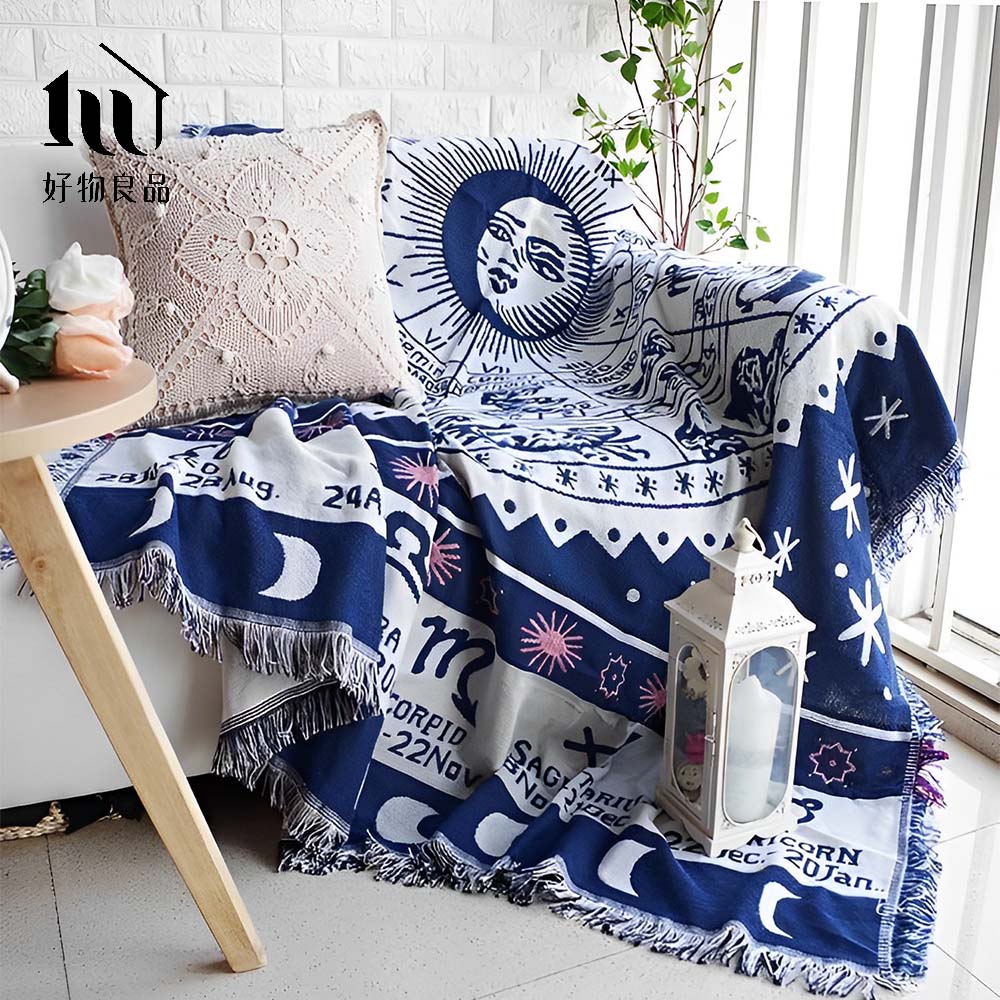 《星座圖騰》旅行居家兩用棉麻針織毯沙發毯汽車蓋毯