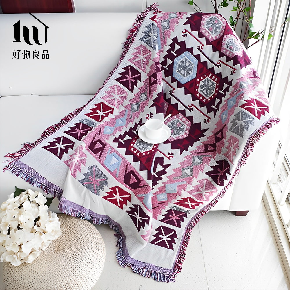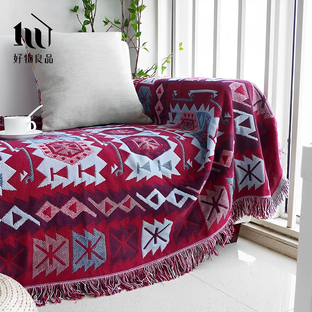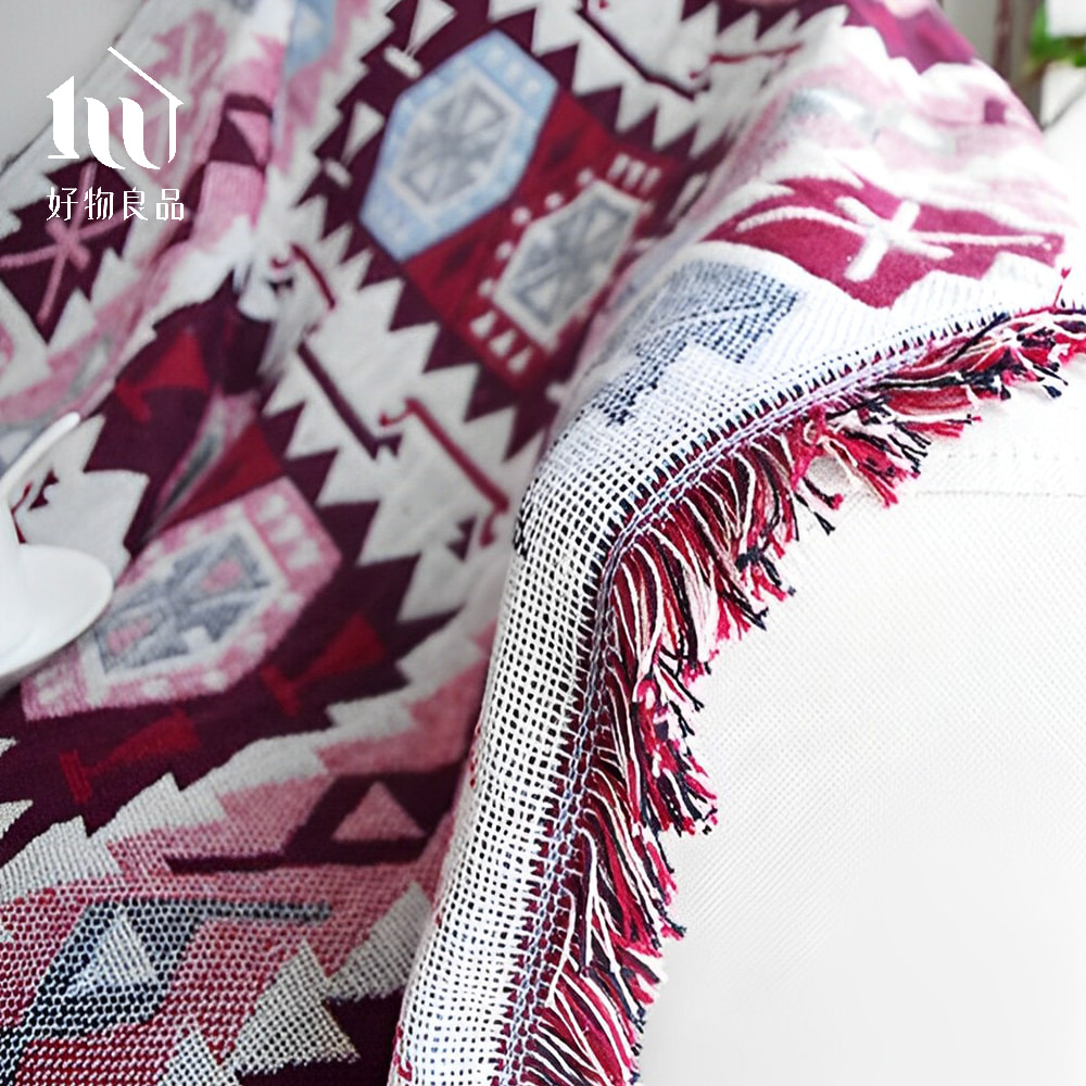 《波希米亞-紅》旅行居家兩用棉麻針織毯沙發毯汽車蓋毯