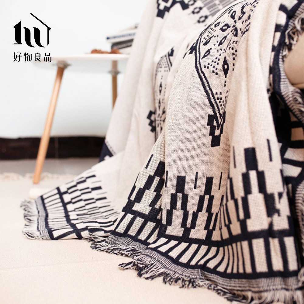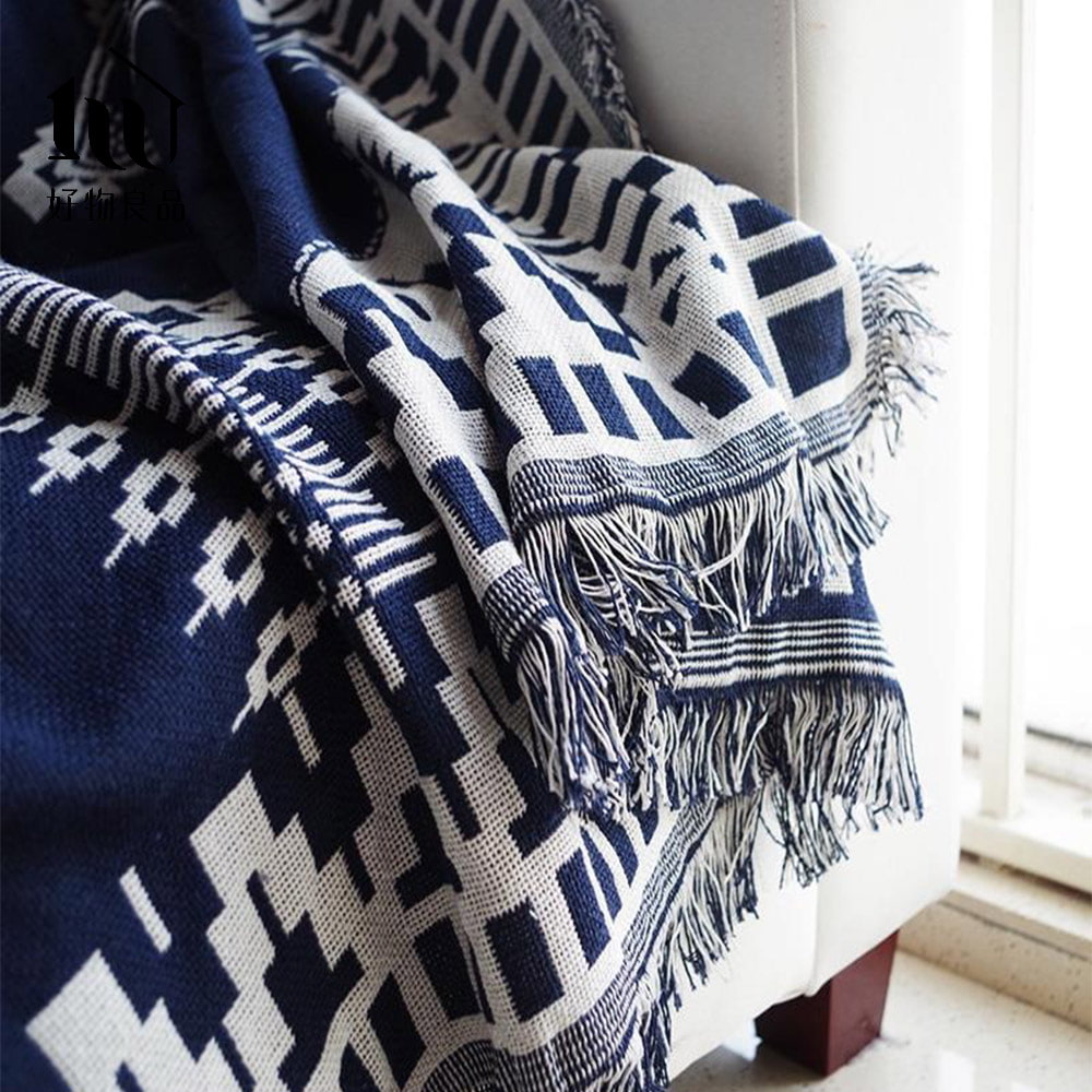 《波希米亞-藍》旅行居家兩用棉麻針織毯沙發毯汽車蓋毯