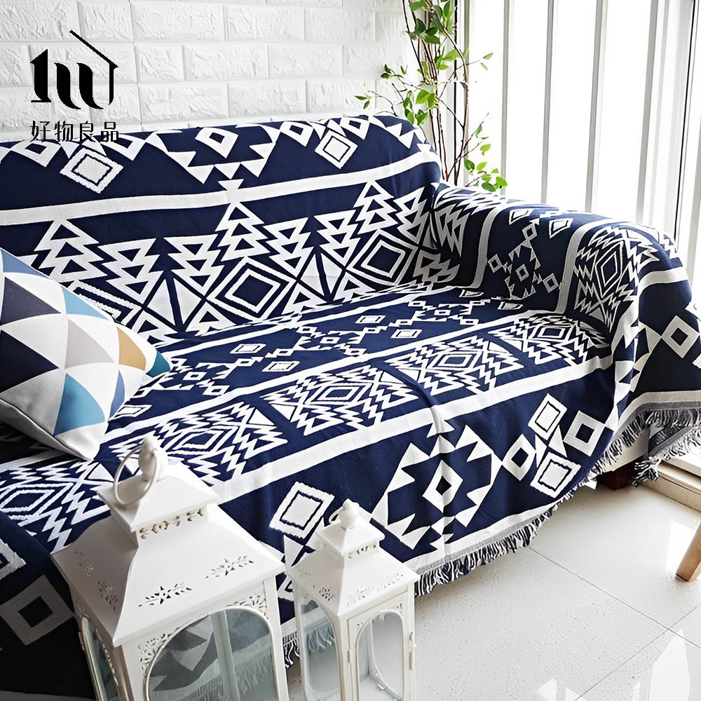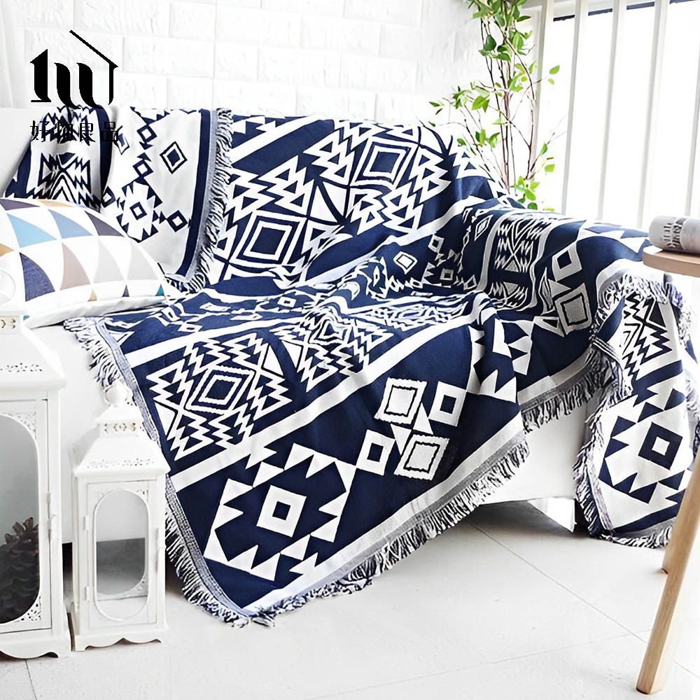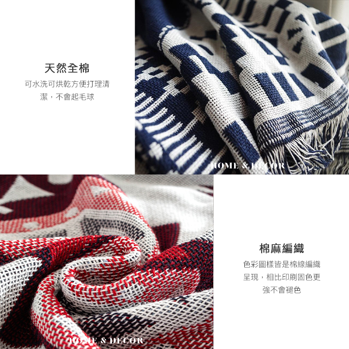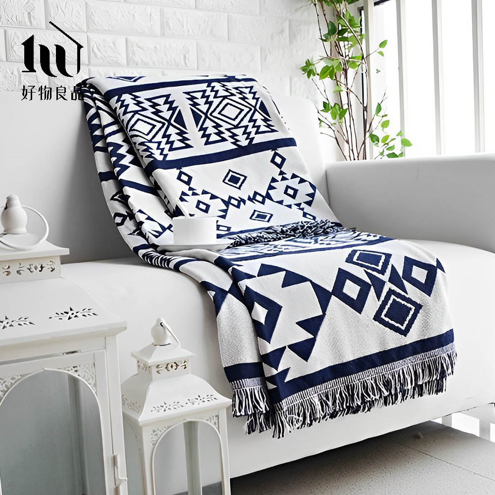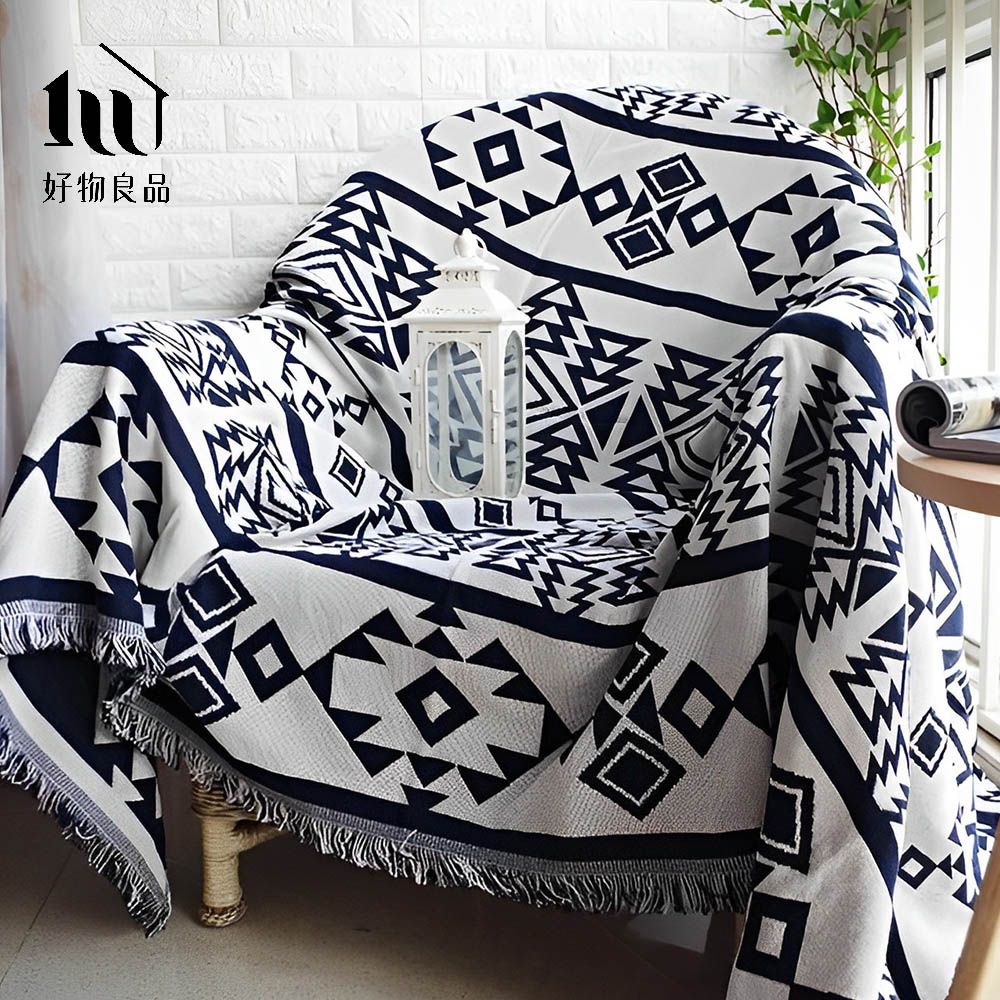 《幾何圖騰》旅行居家兩用棉麻針織毯沙發毯汽車蓋毯