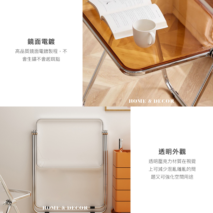 • 透明外觀-透明壓克力材質在視覺上可減少混亂雜亂的問題又可強化空間用途