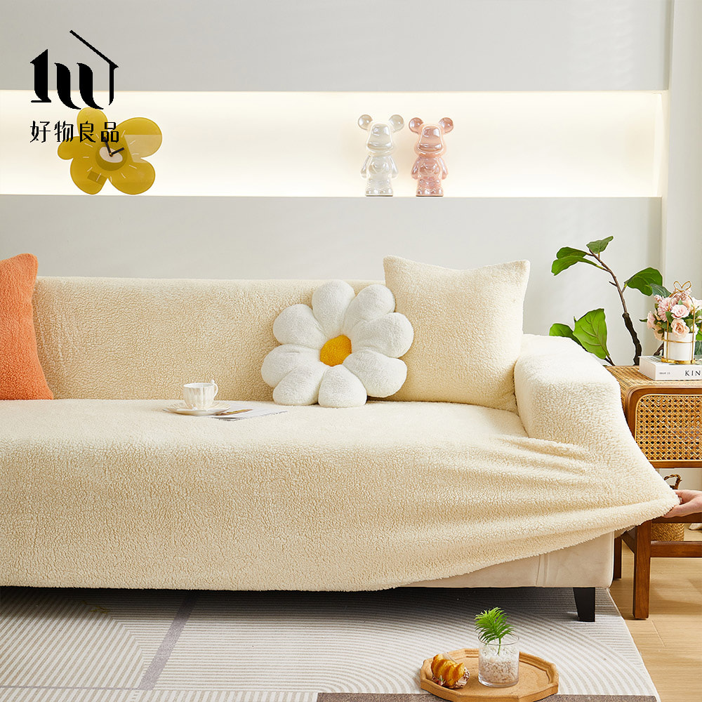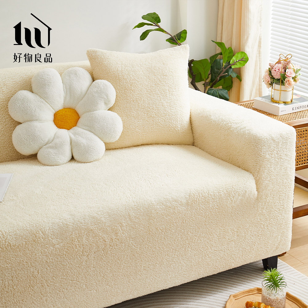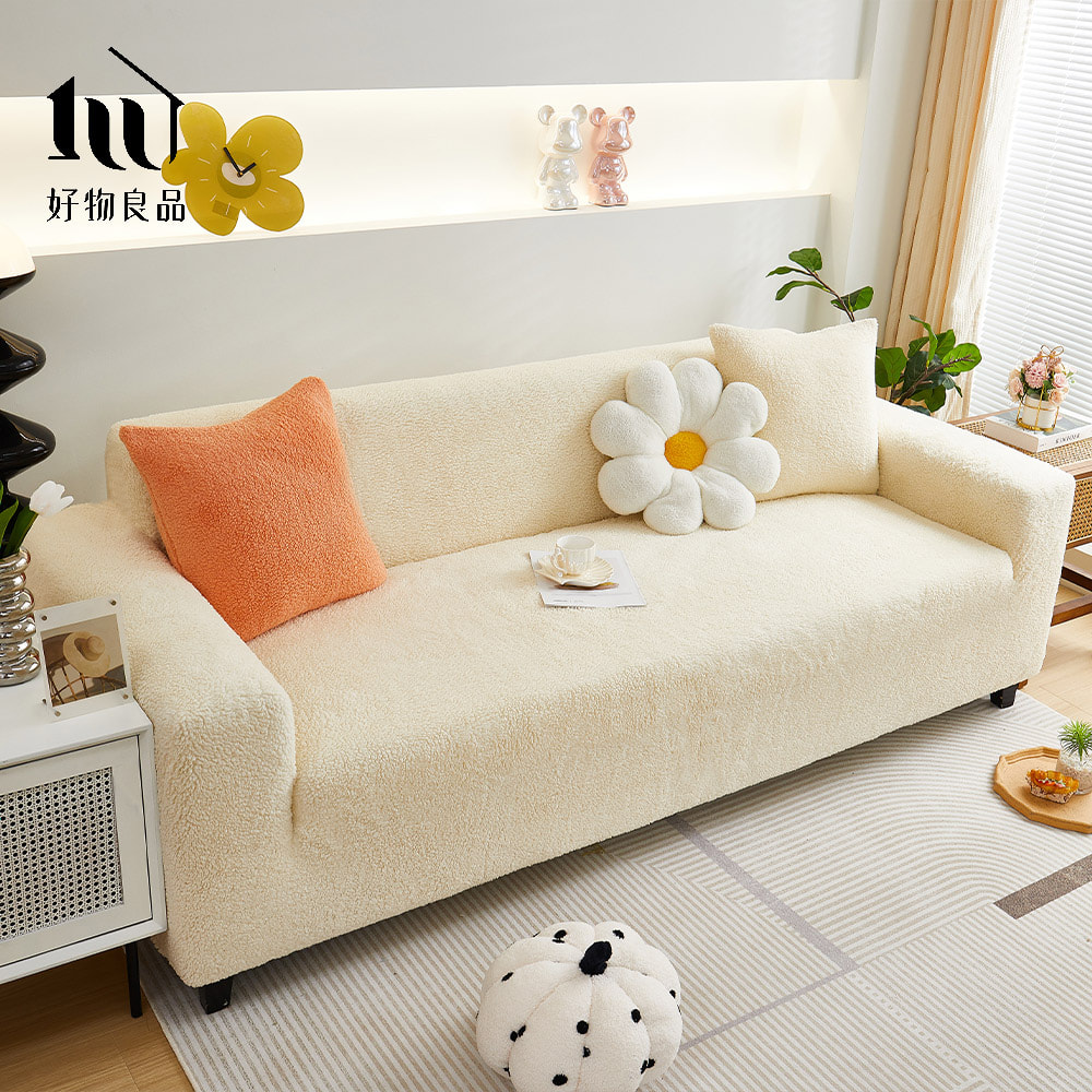短毛保暖系列《奶油白》防貓抓系列高彈力立體提花彈力沙發罩|贈抱枕套*1+泡棉條