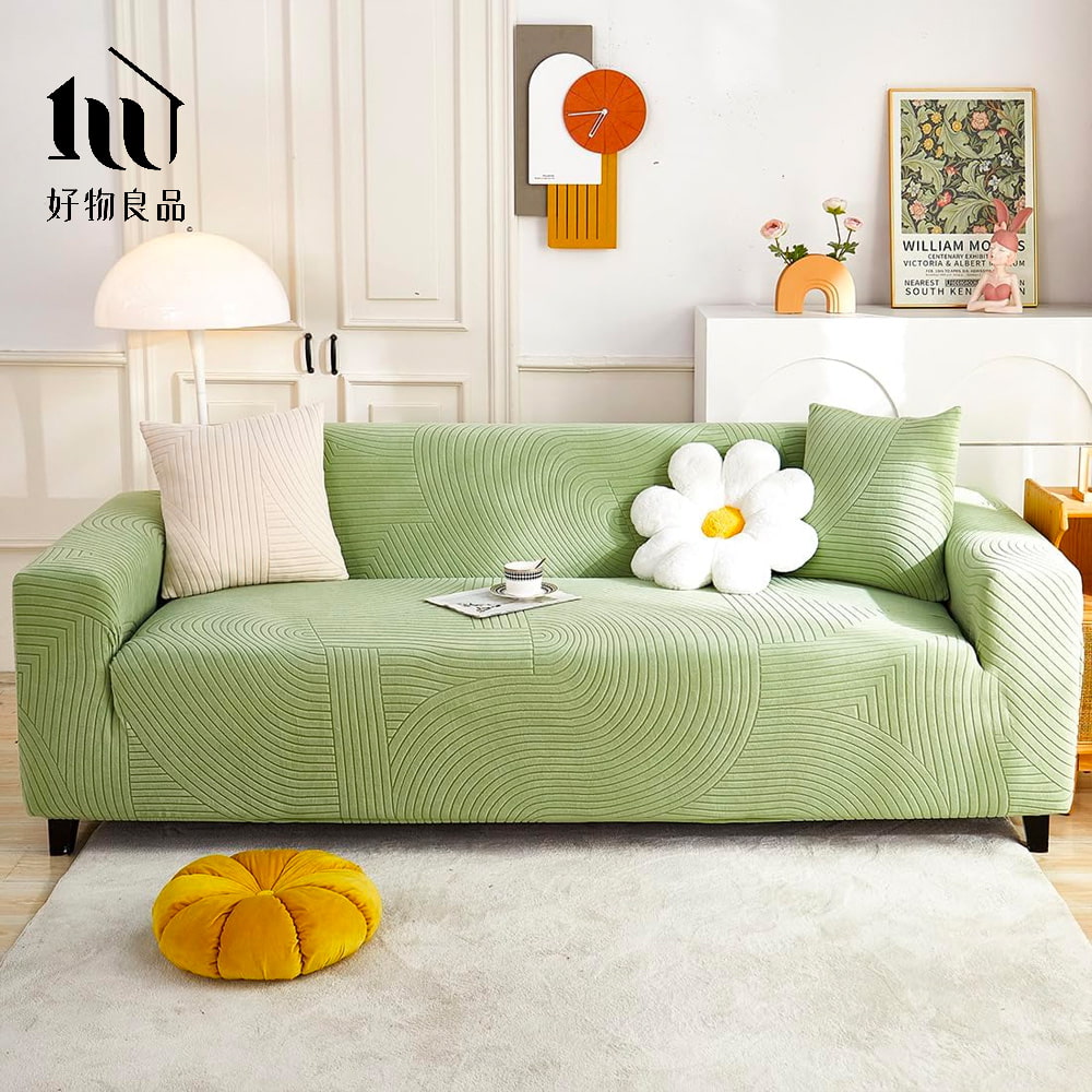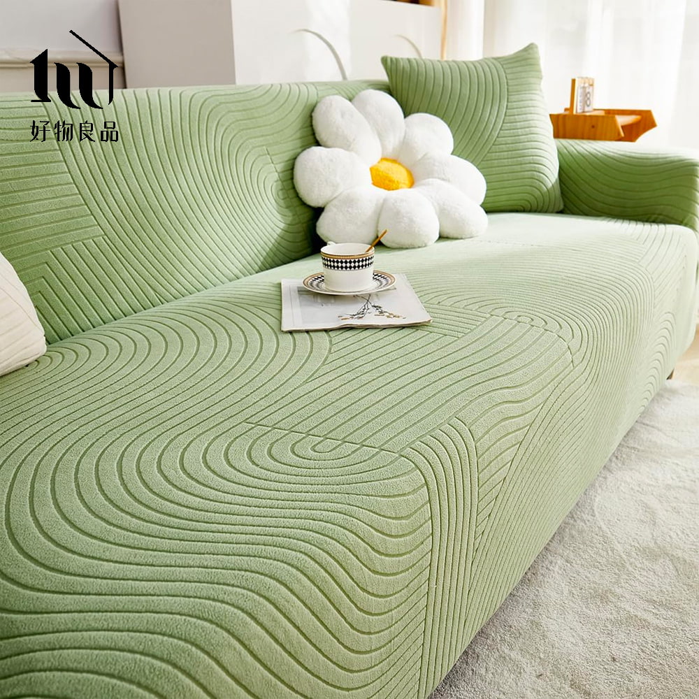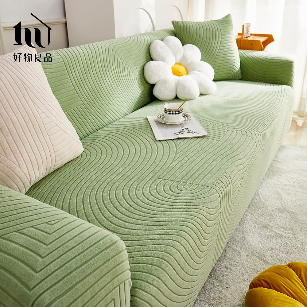 抽象藝術系列《綠色》防貓抓系列高彈力立體提花彈力沙發罩|贈抱枕套*1+泡棉條