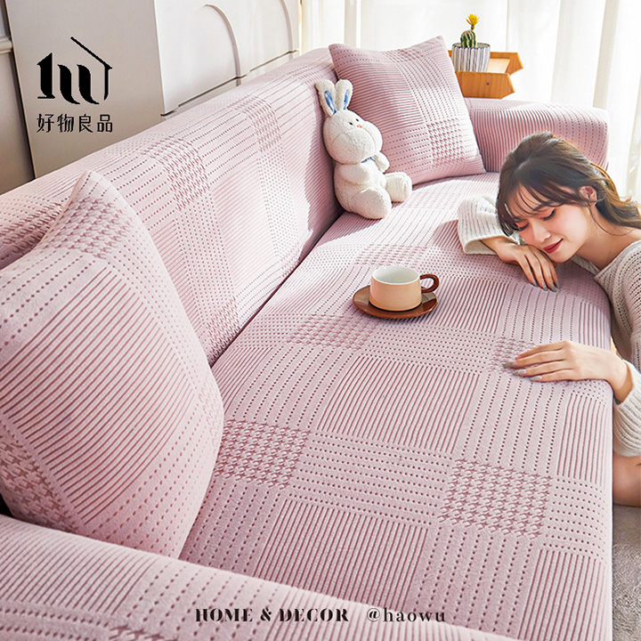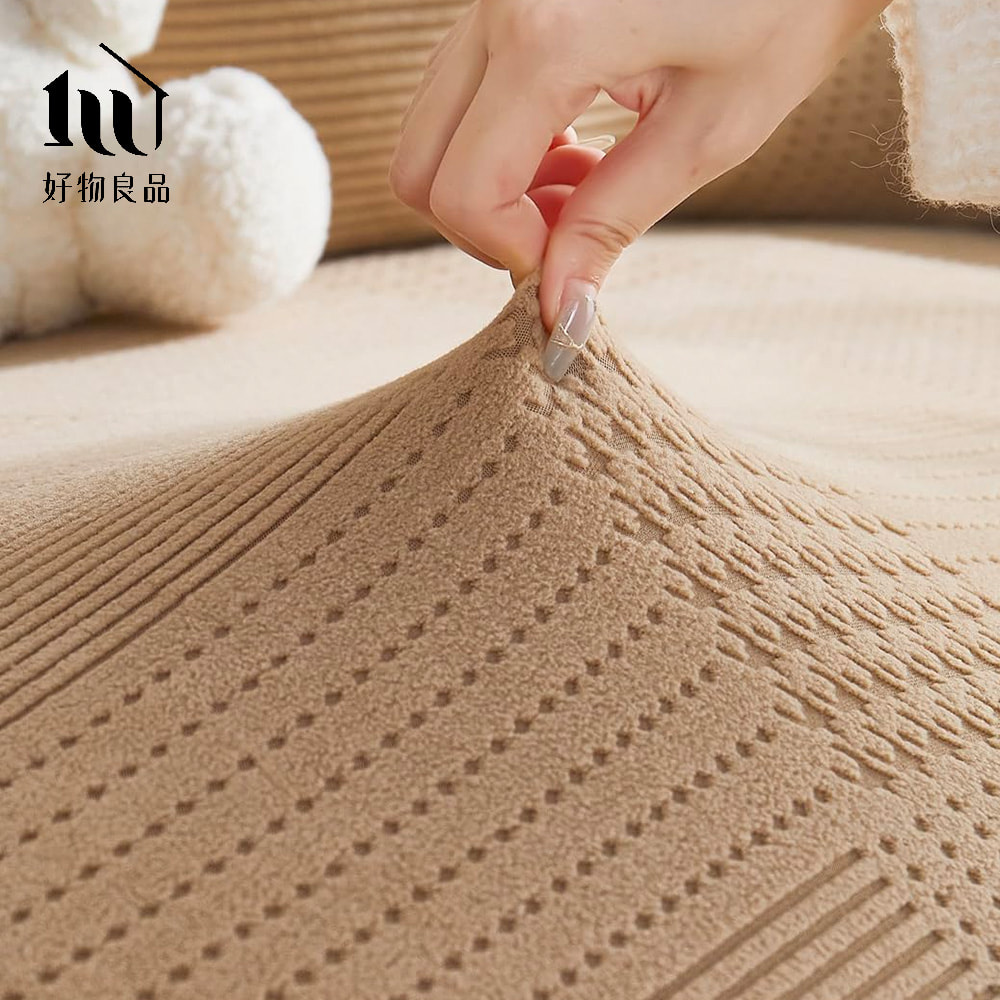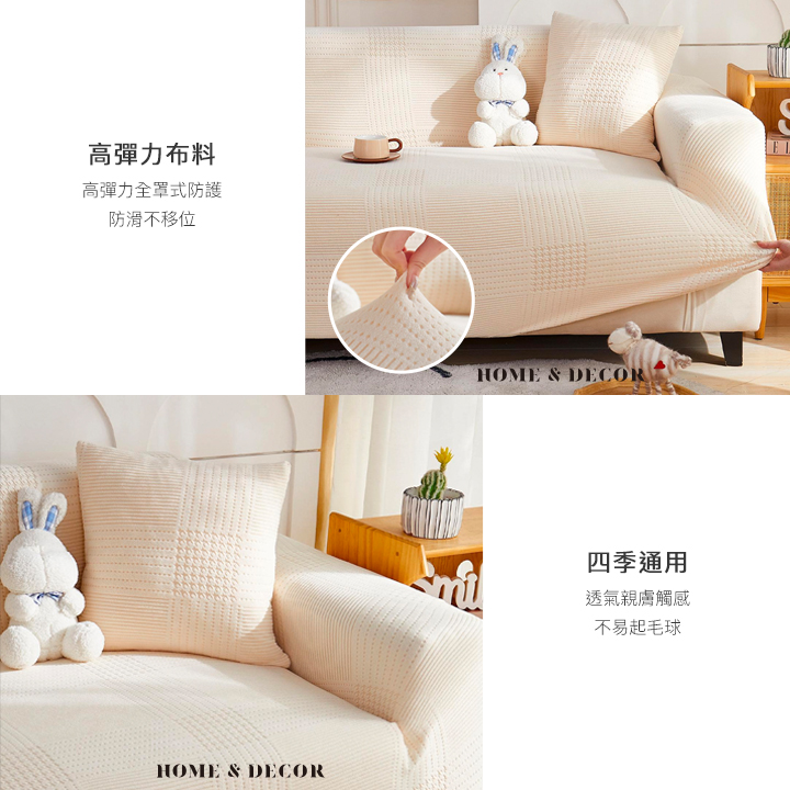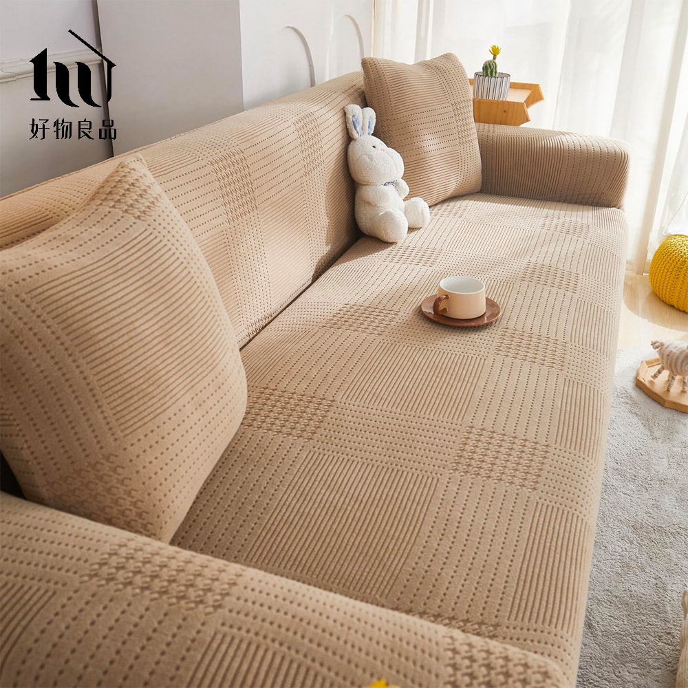 輕奢格紋系列《卡其色》防貓抓系列高彈力立體提花彈力沙發罩|贈抱枕套*1+泡棉條