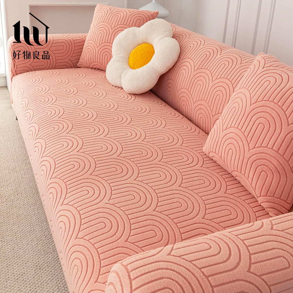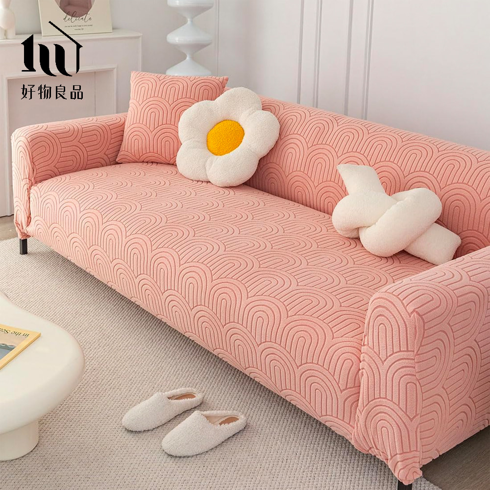 幾何波紋系列《粉色》四季通用高彈力立體提花彈力沙發罩|贈抱枕套*1+泡棉條