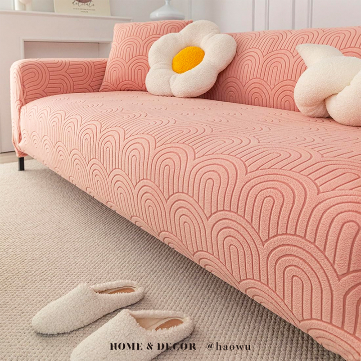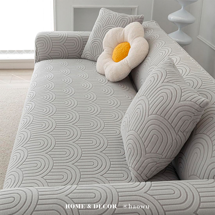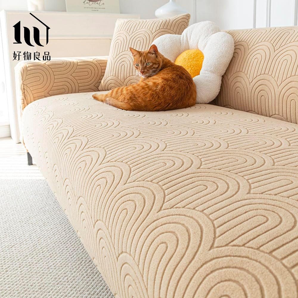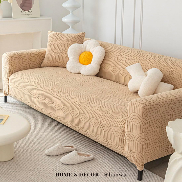 幾何波紋系列《卡其》四季通用高彈力立體提花彈力沙發罩|贈抱枕套*1+泡棉條