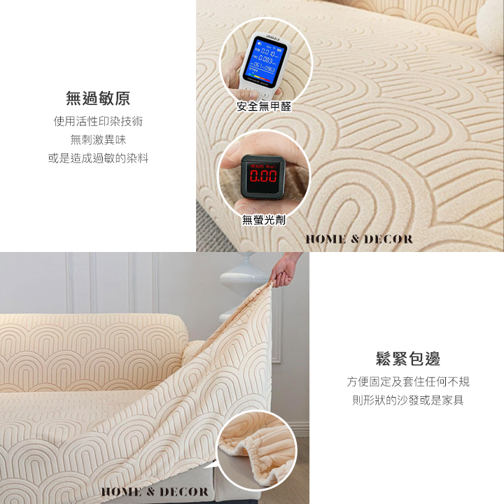 • 鬆緊包邊-方便固定及套住任何不規則形狀的沙發或是家具