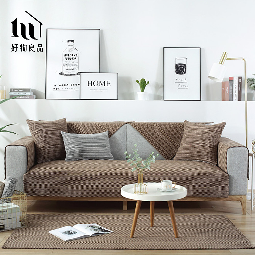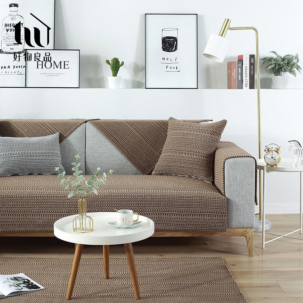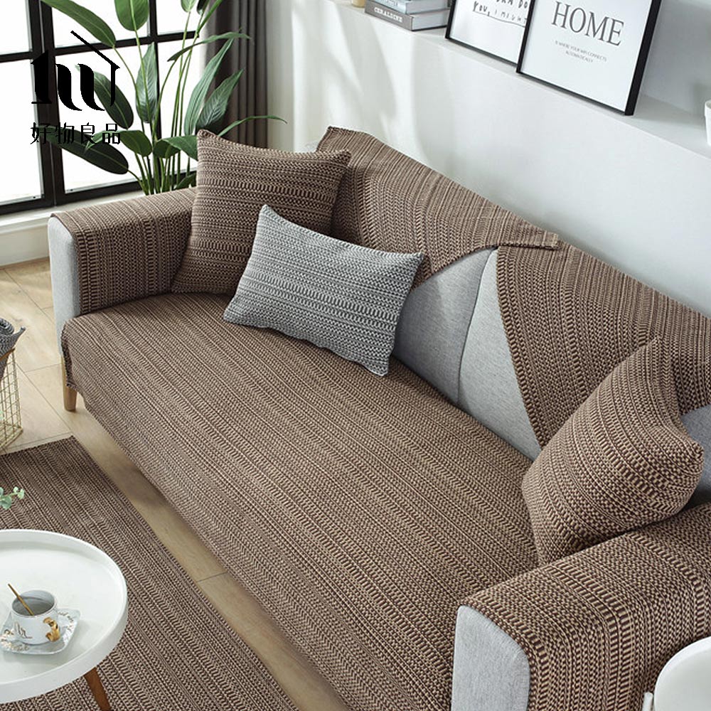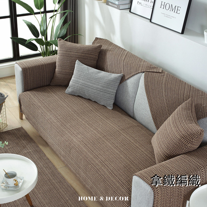《拿鐵編織》日系簡約棉麻編織紋防滑防貓抓沙發墊組合