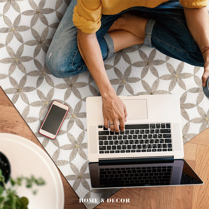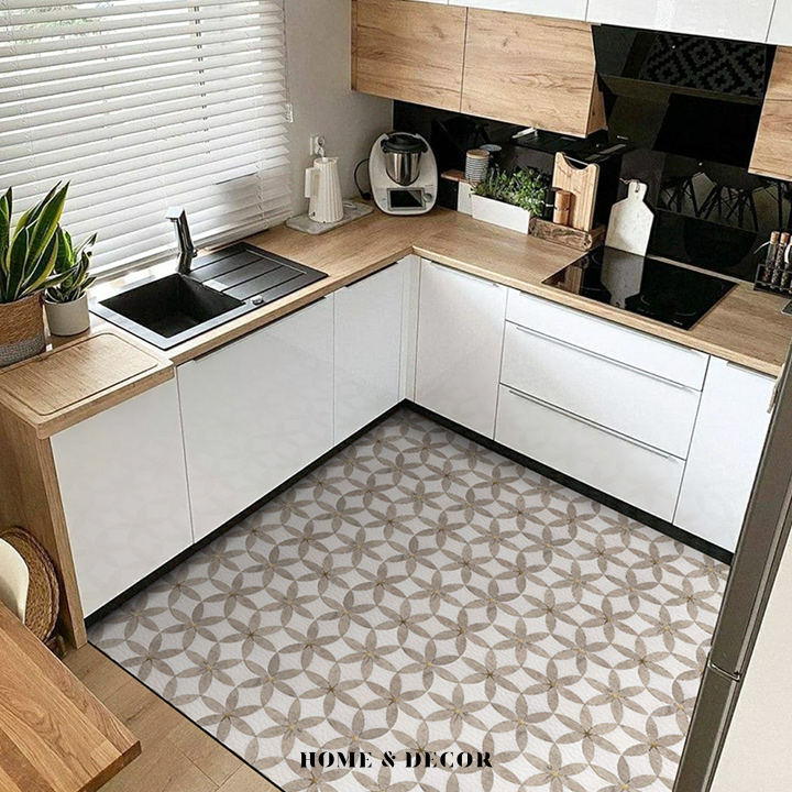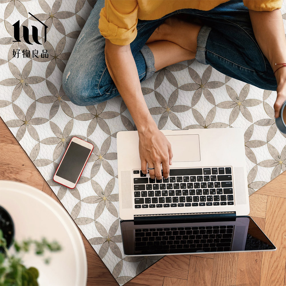 《羅馬花磚》設計款頂級可剪裁防油防水減壓皮革廚房地墊