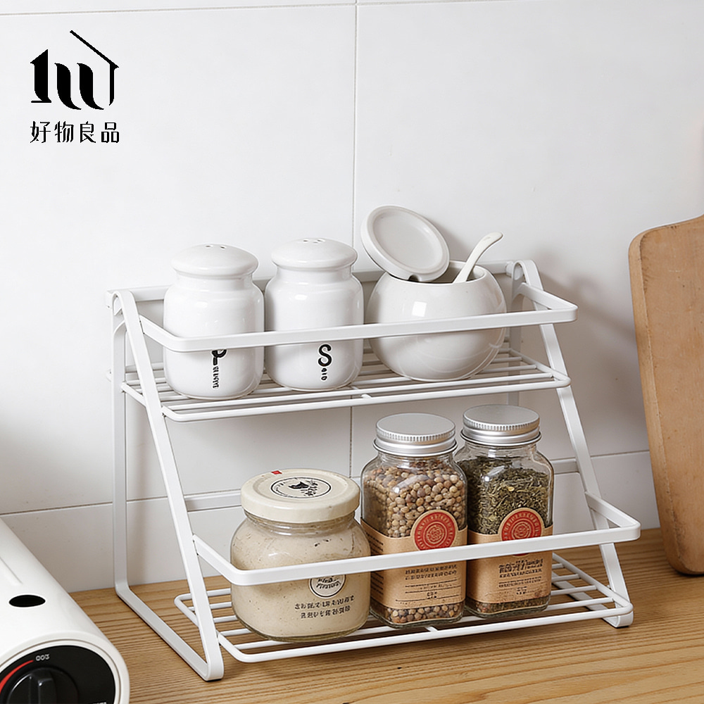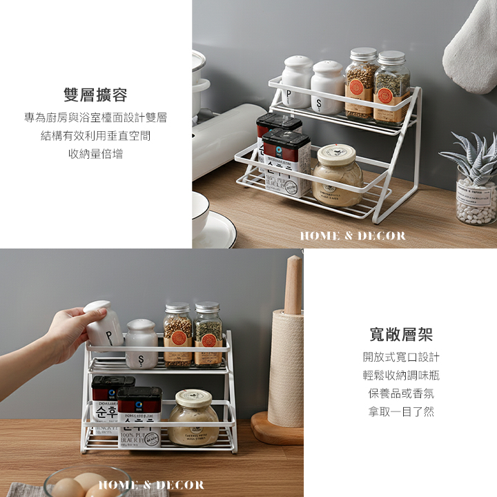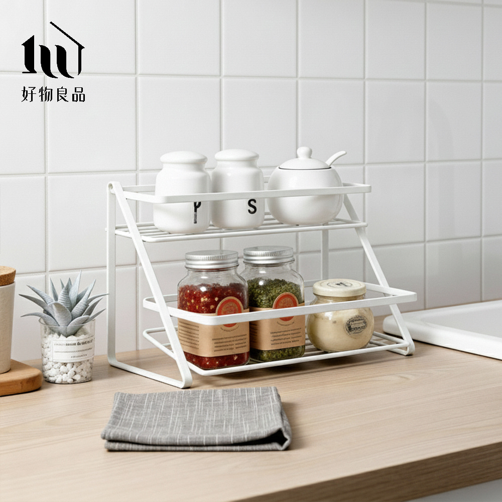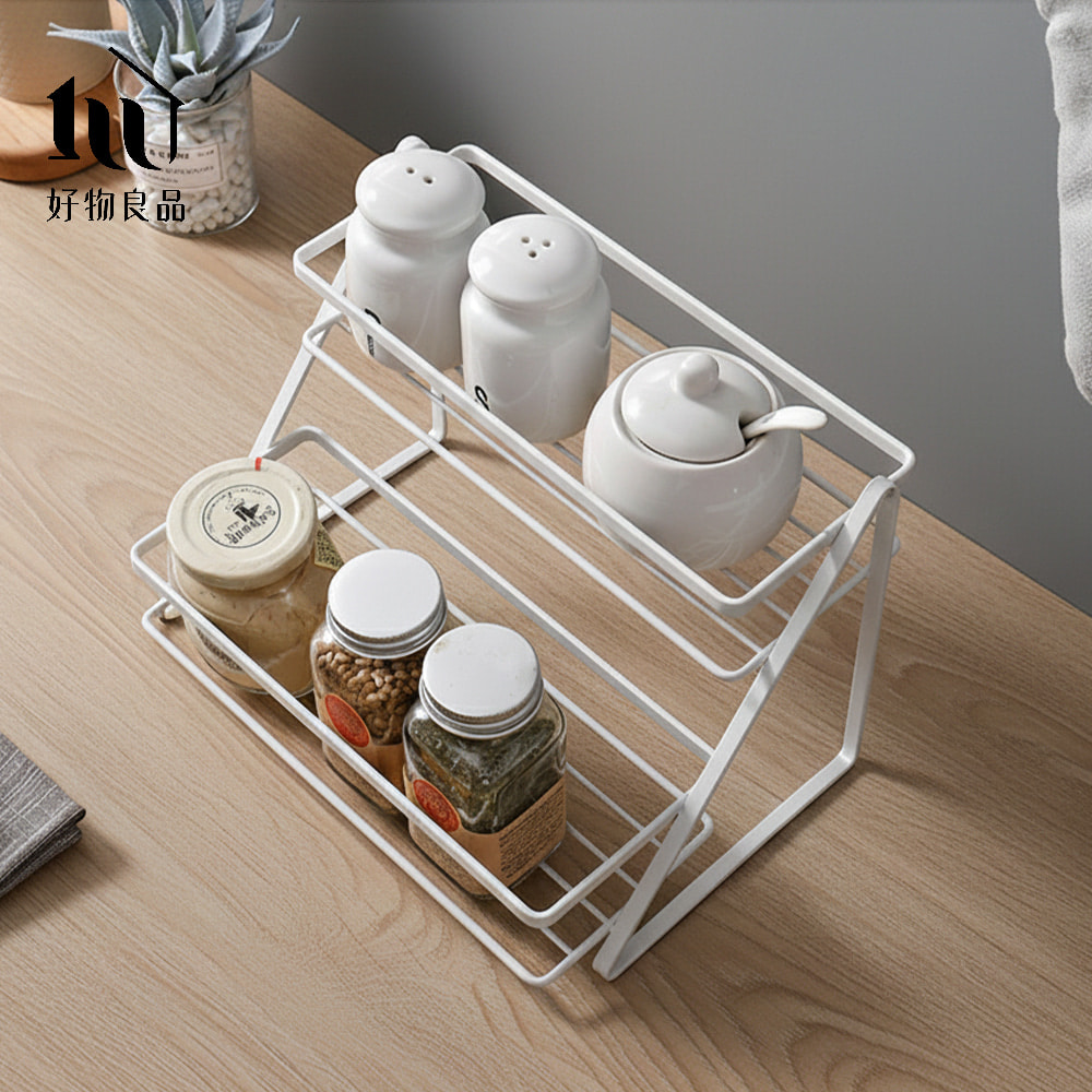 居家收納雙層鐵藝置物架廚房調味罐浴室收納架 桌面整理架