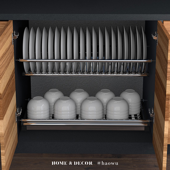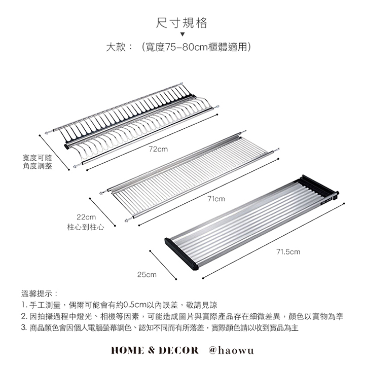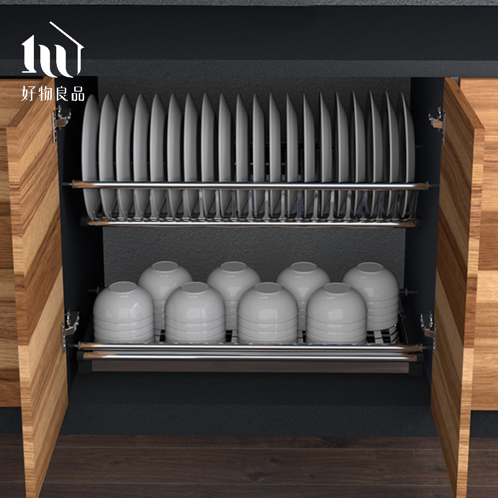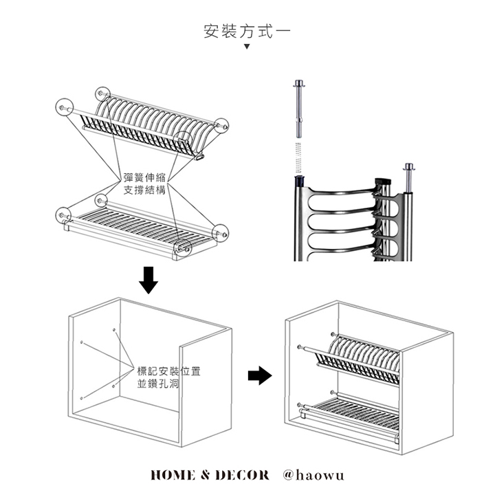 雙層不鏽鋼櫥櫃瀝水碗盤收納支撐架60~90公分