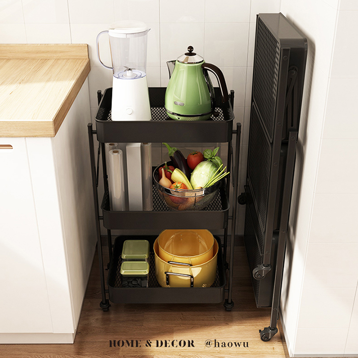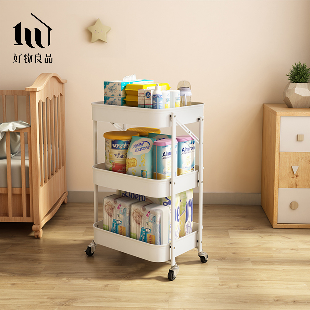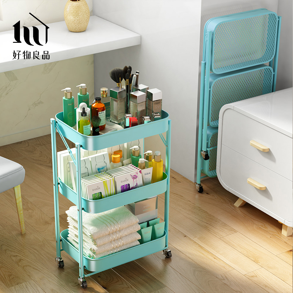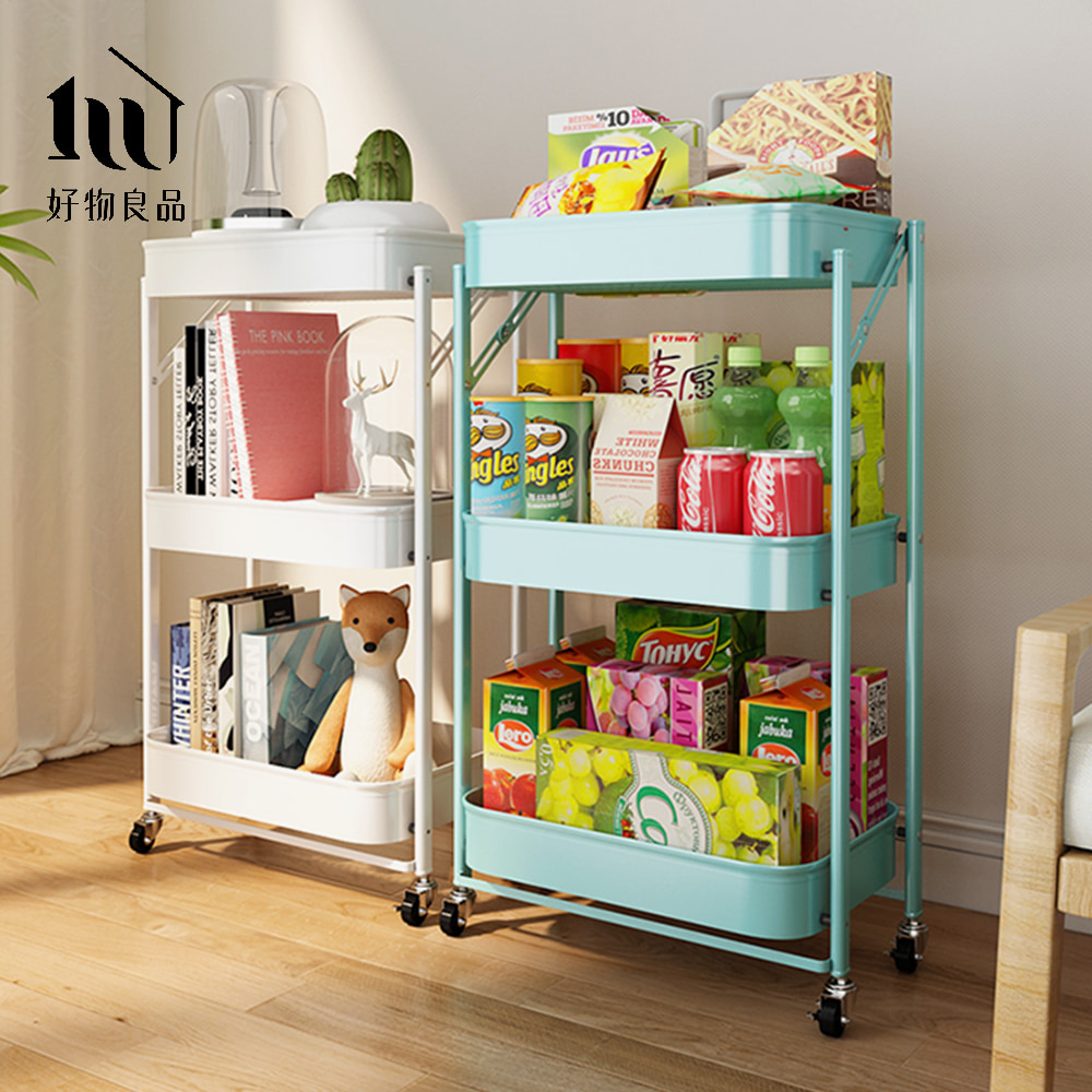 可煞車萬向輪折疊收納置物三層推車