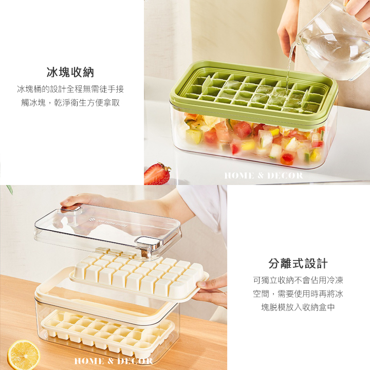 • 分離式設計-可獨立收納不會佔用冷凍空間,需要使用時再將冰塊脱模放入收納盒中