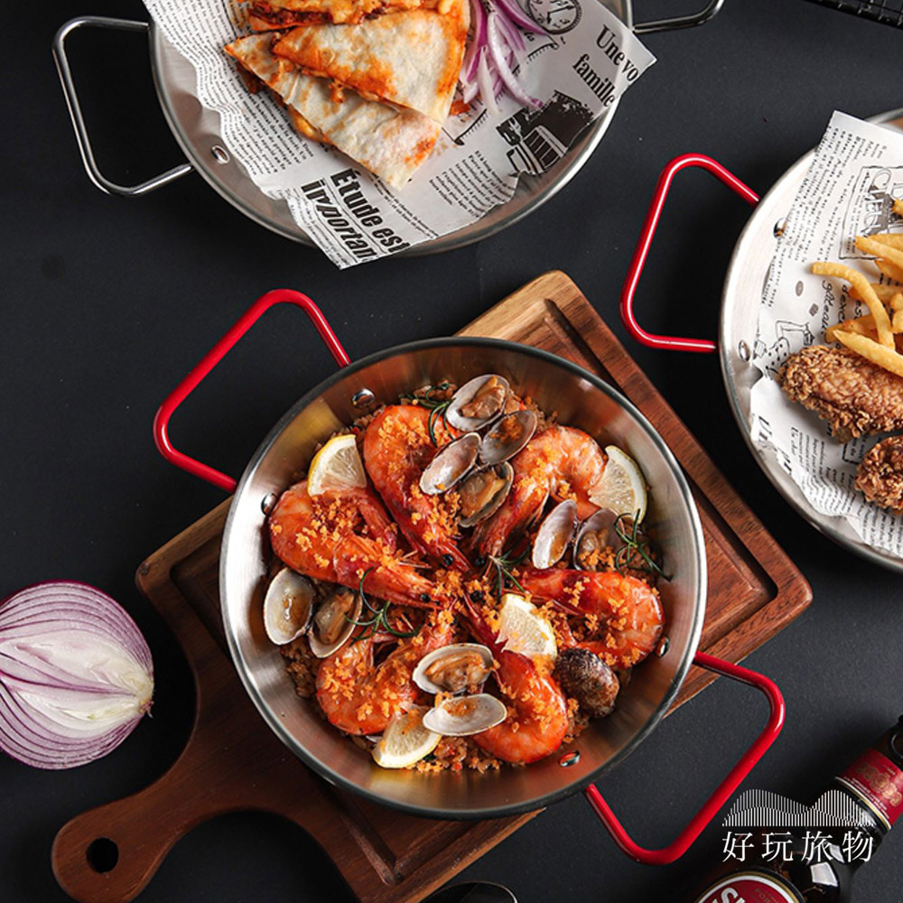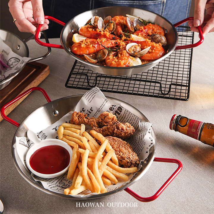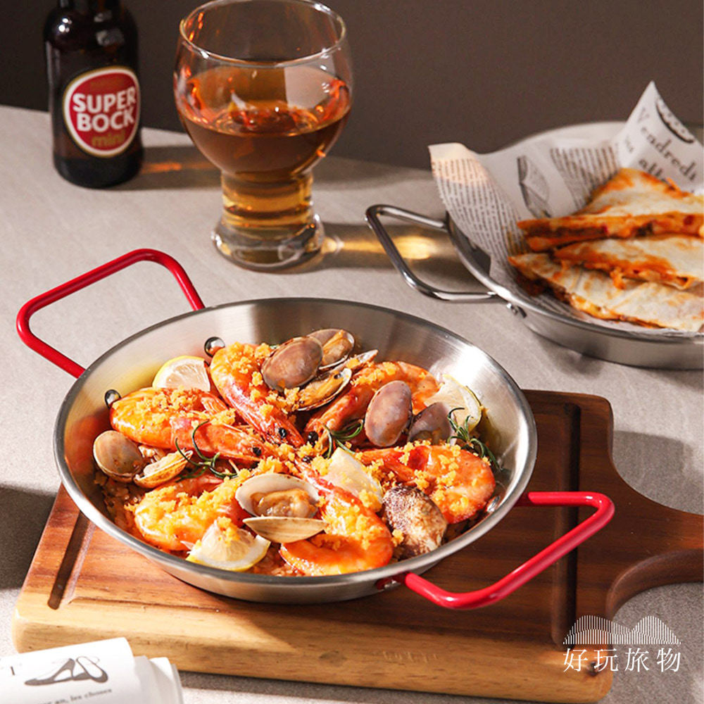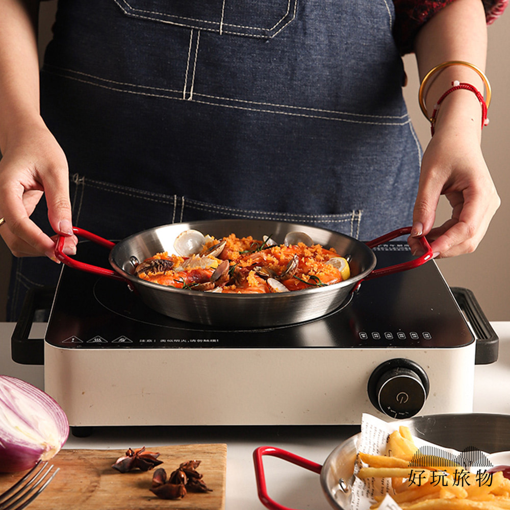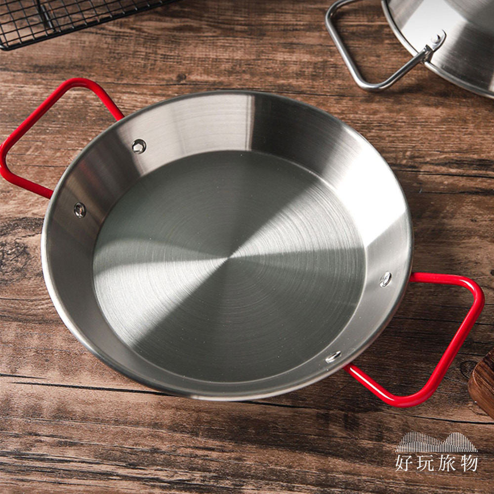 紅色雙耳把手不鏽鋼平底鍋 露營烤盤 露營煎鍋