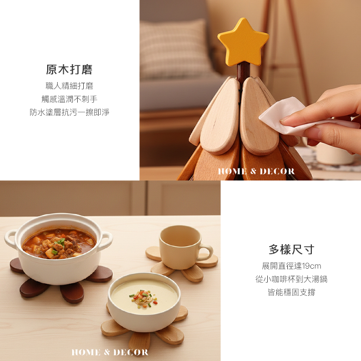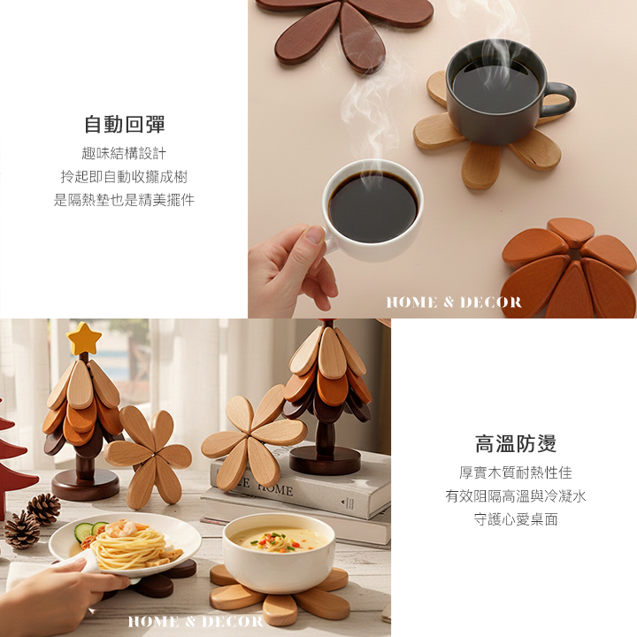 • 自動回彈- 趣味結構設計,拎起即自動收攏成樹,是隔熱墊也是精美擺件。