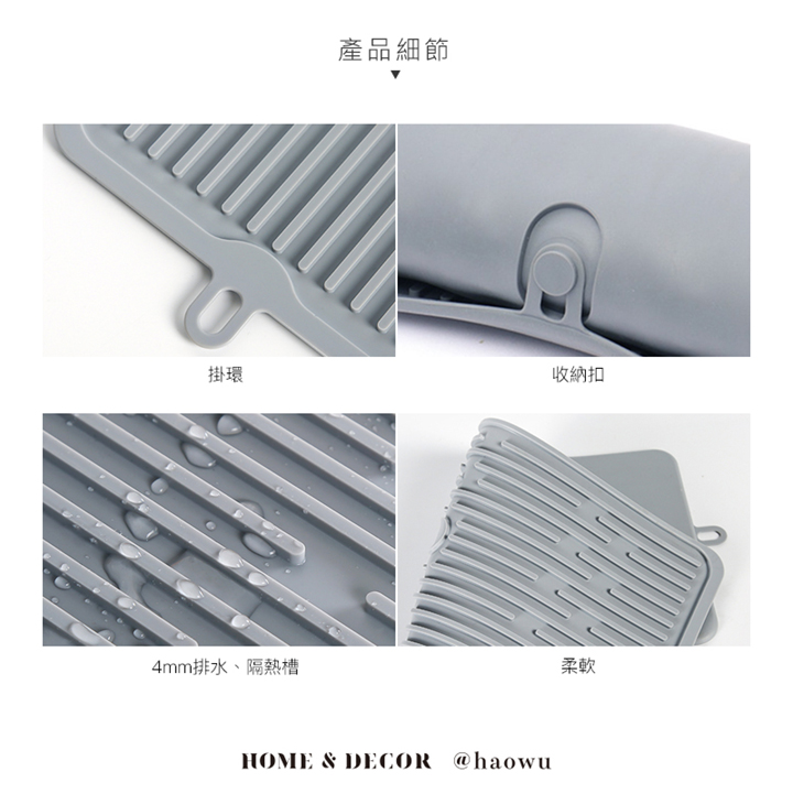 • 矽膠材質耐酸、耐鹼、耐高低溫-可任意角度摺疊,方便清洗細節污漬