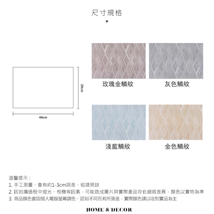 玫瑰金鱗紋、灰色鱗紋、淺藍鱗紋、金色鱗紋