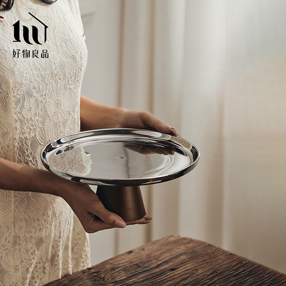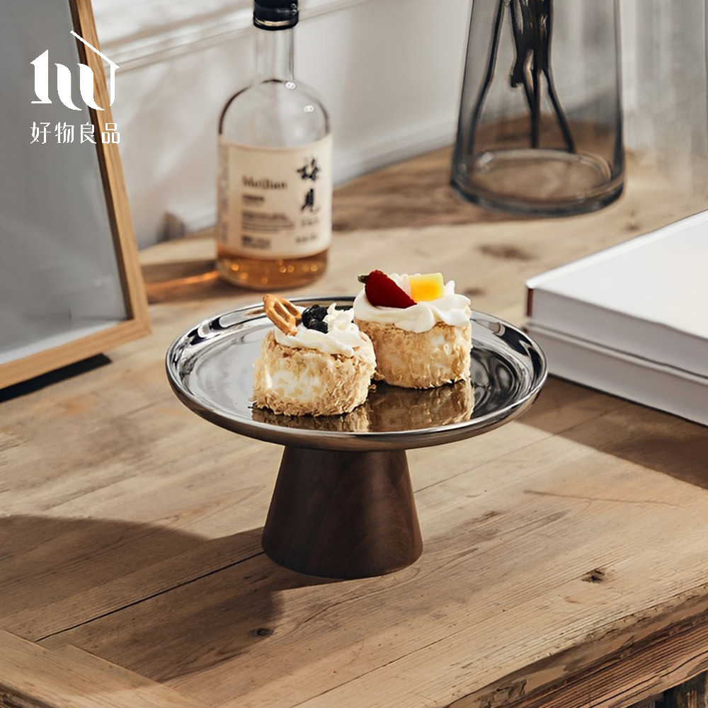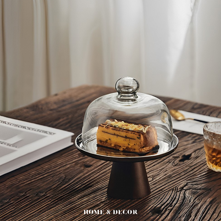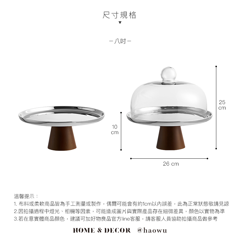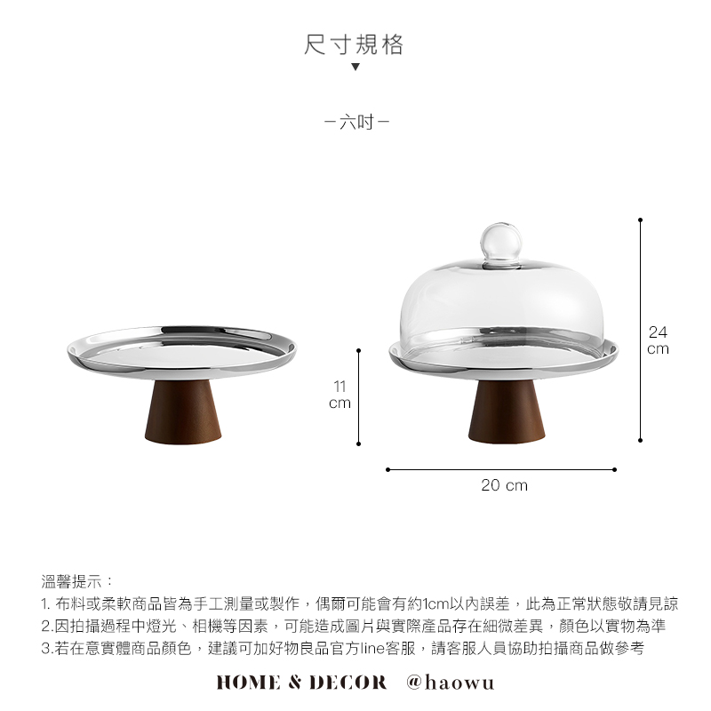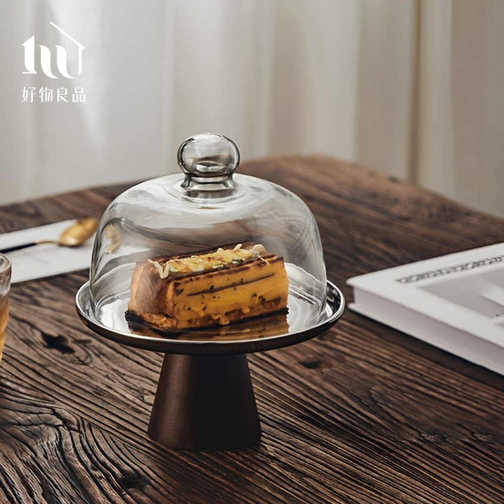 鏡面原木款_高質感玻璃罩高腳蛋糕盤飾品托盤