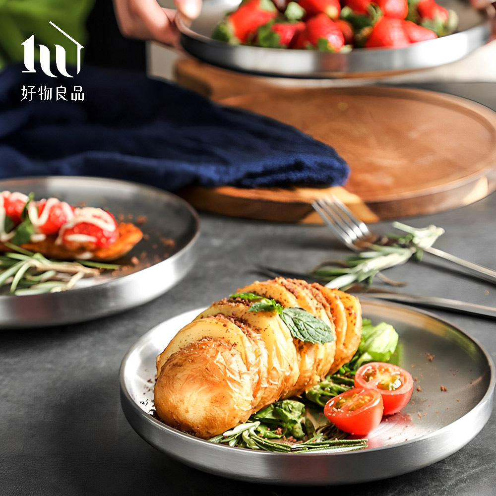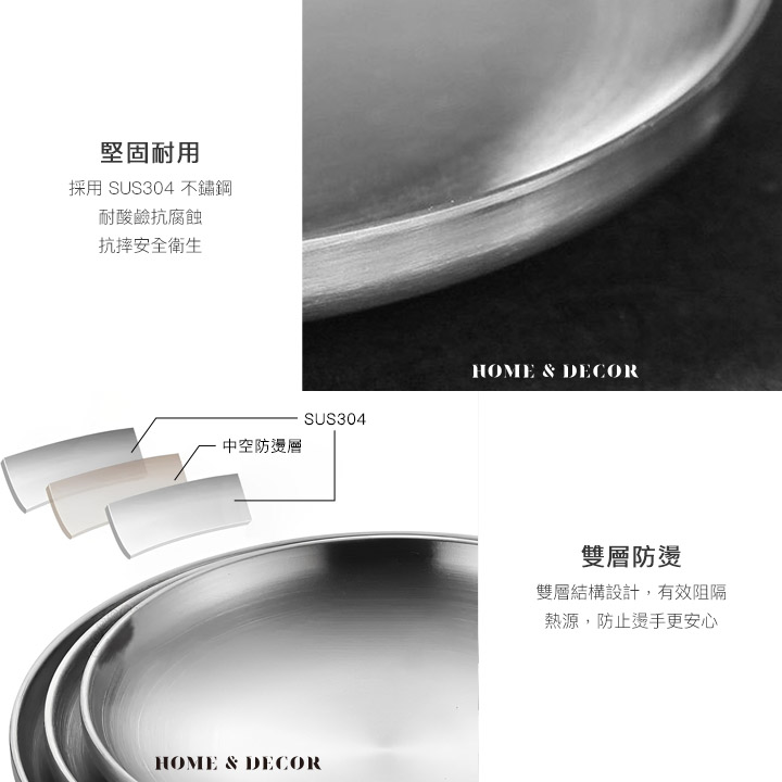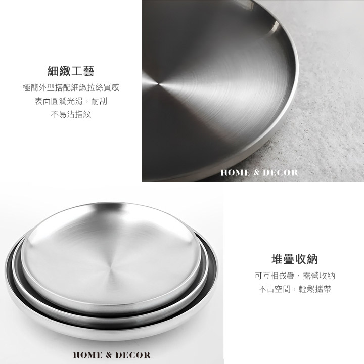 304不鏽鋼雙層隔熱圓盤|防燙餐盤 堆疊收納 戶外野餐盤_三款尺寸