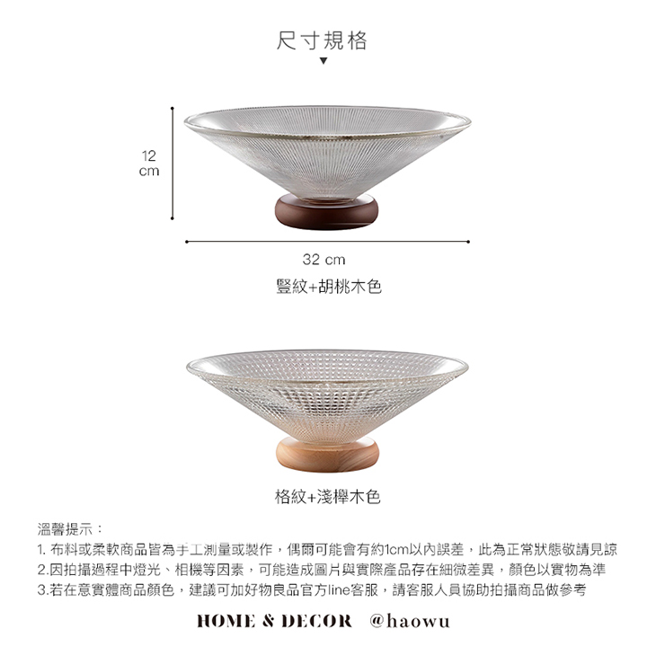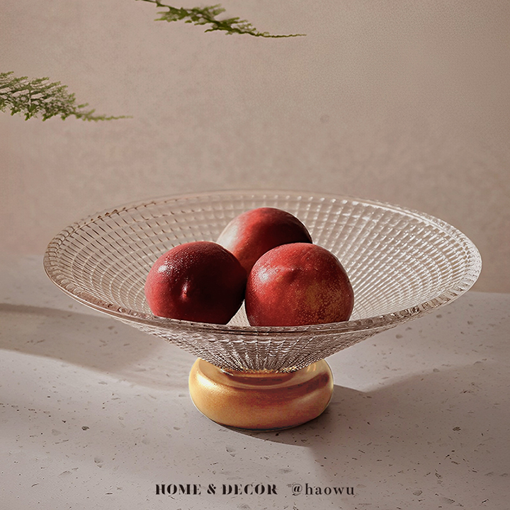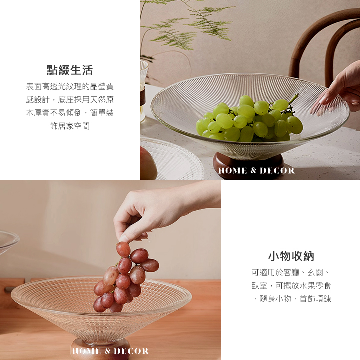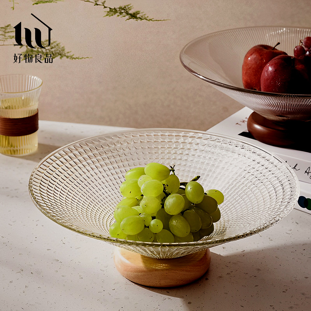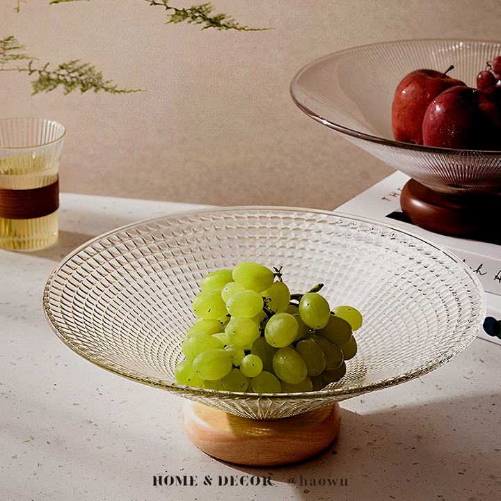 立體紋理玻璃實木座水果零食托盤