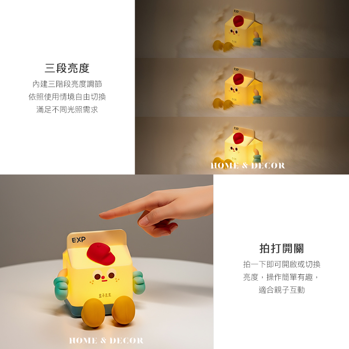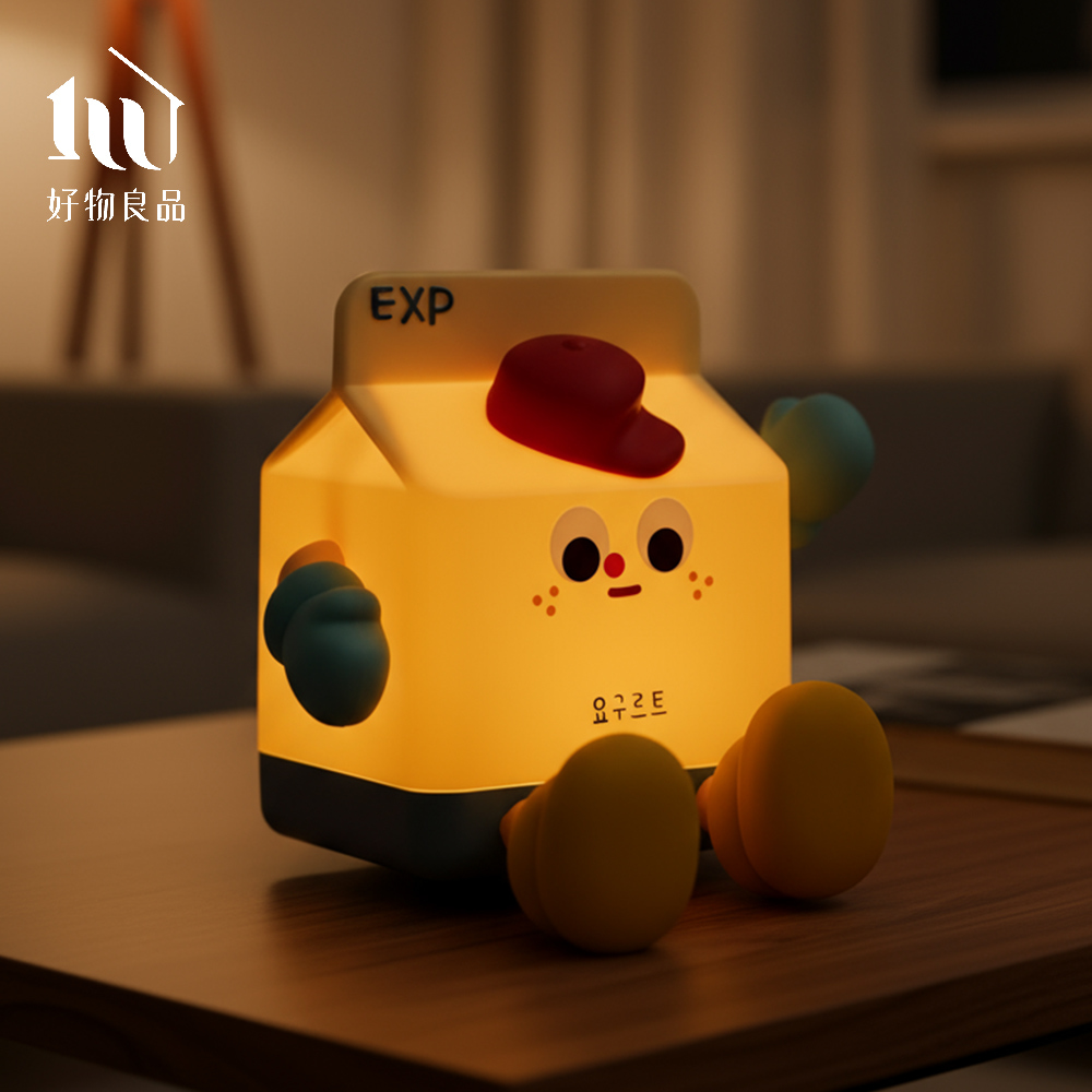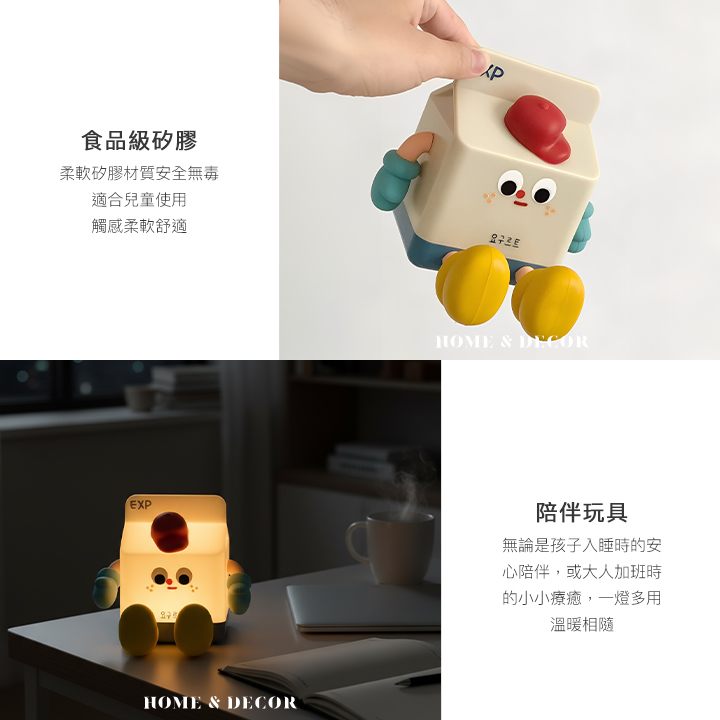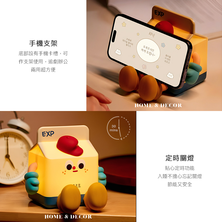 韓國牛奶盒玩偶|矽膠充電小夜燈×智能開關手機支架