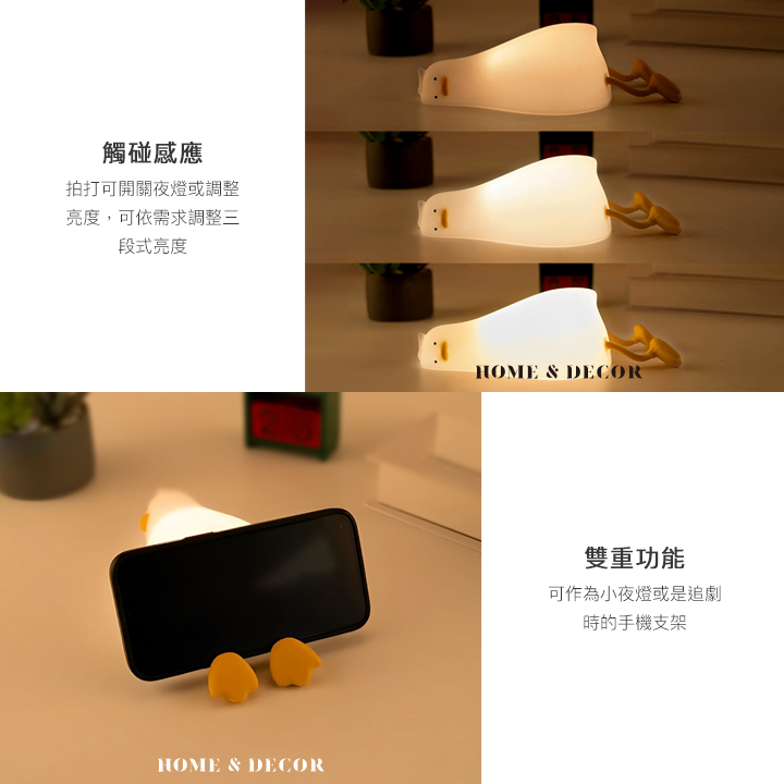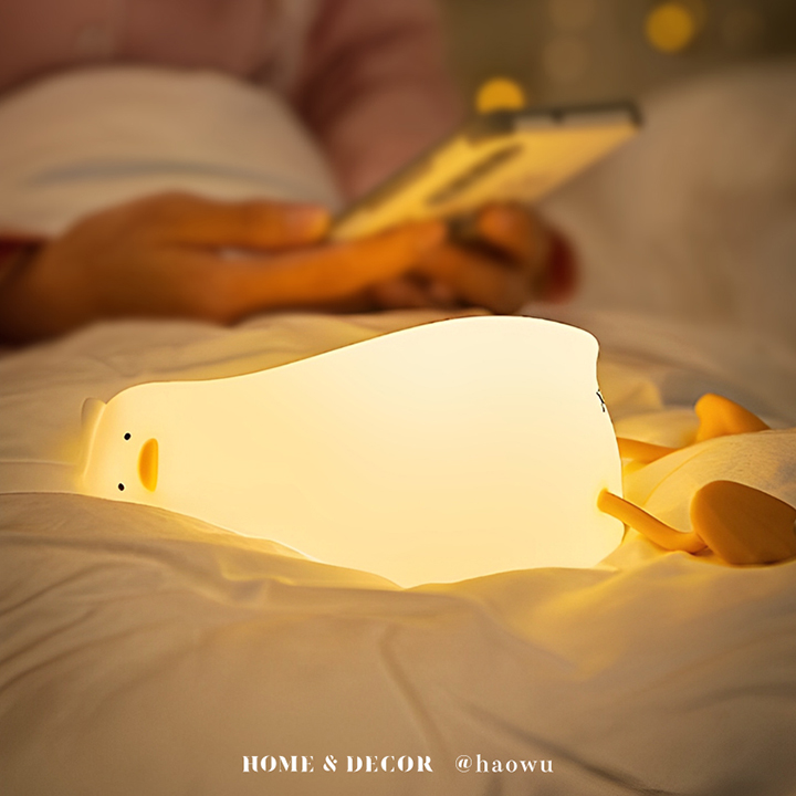 療癒系矽膠充電定時桌燈躺平鴨