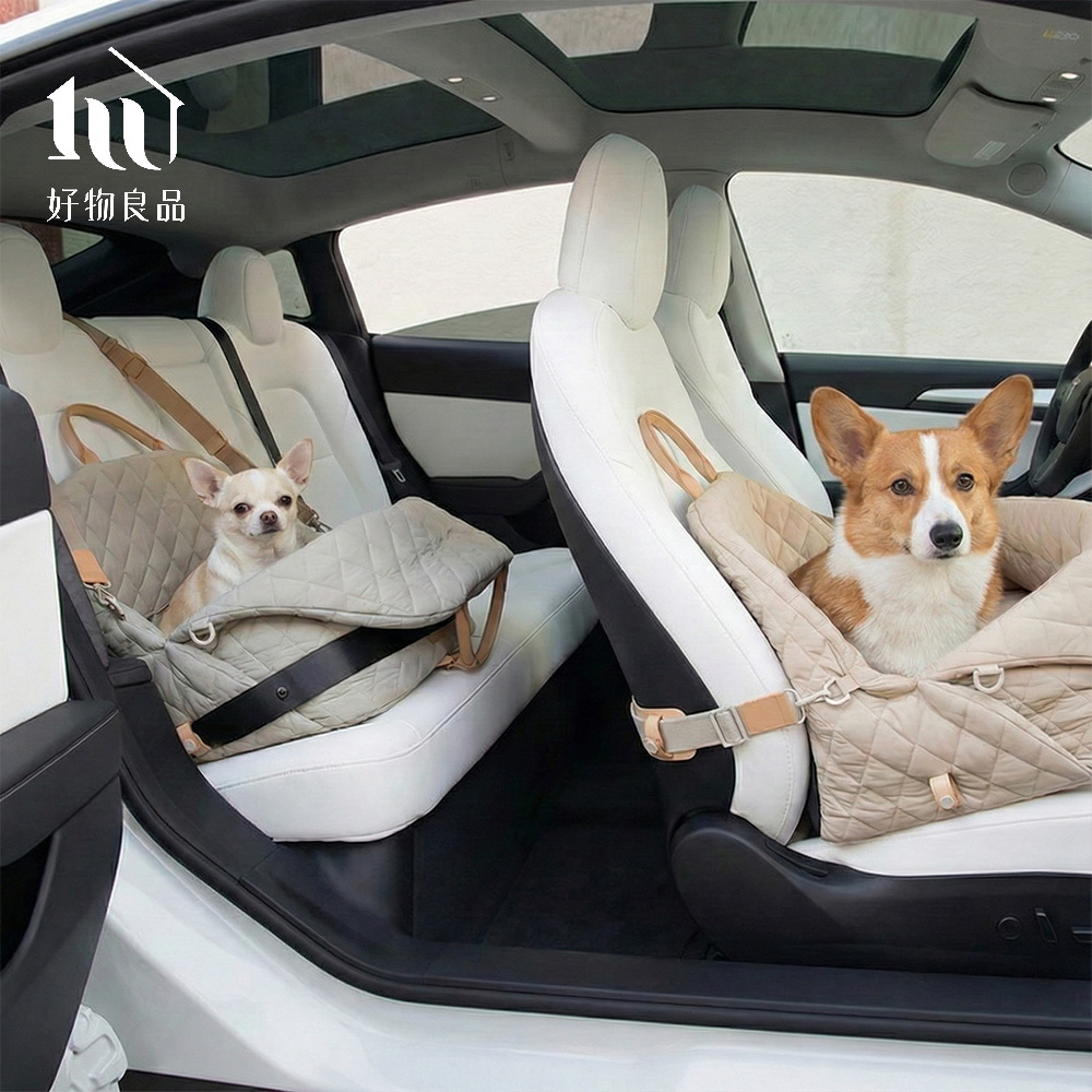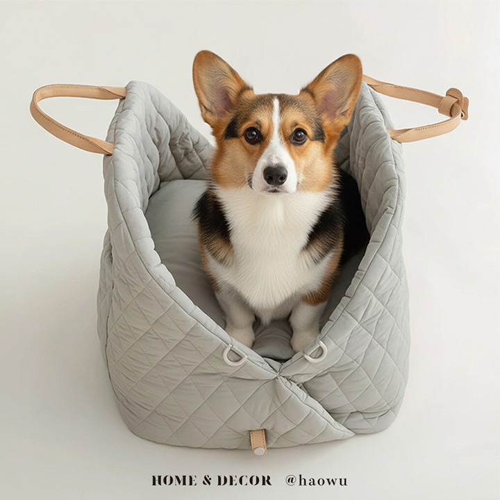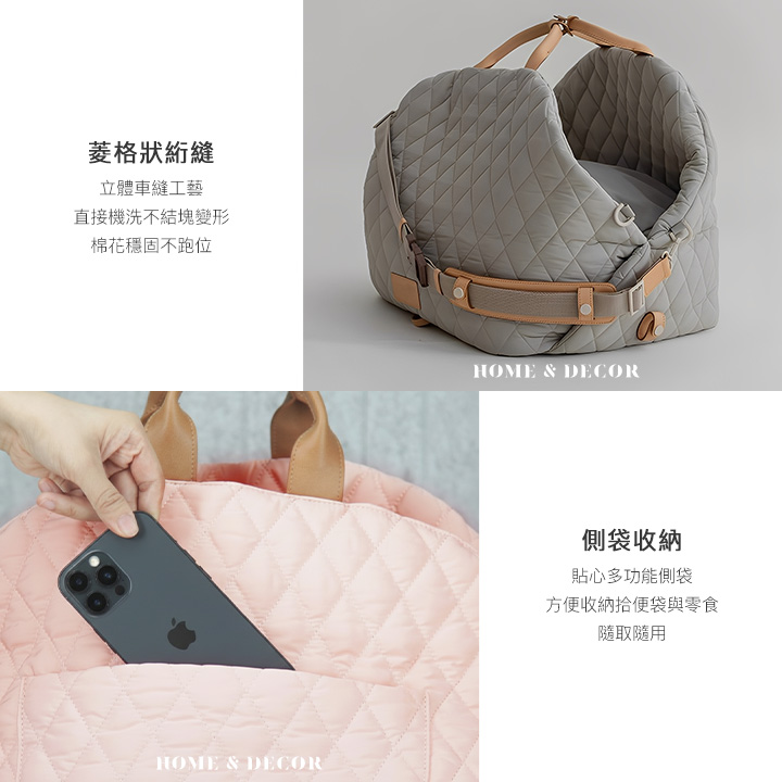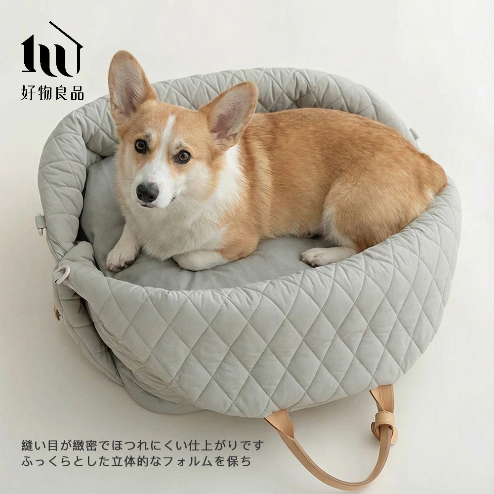 日本高質感菱格紋寵物外出包 車載安全座椅 旅行移動狗窩