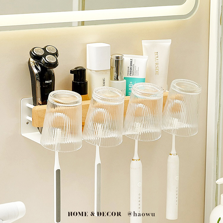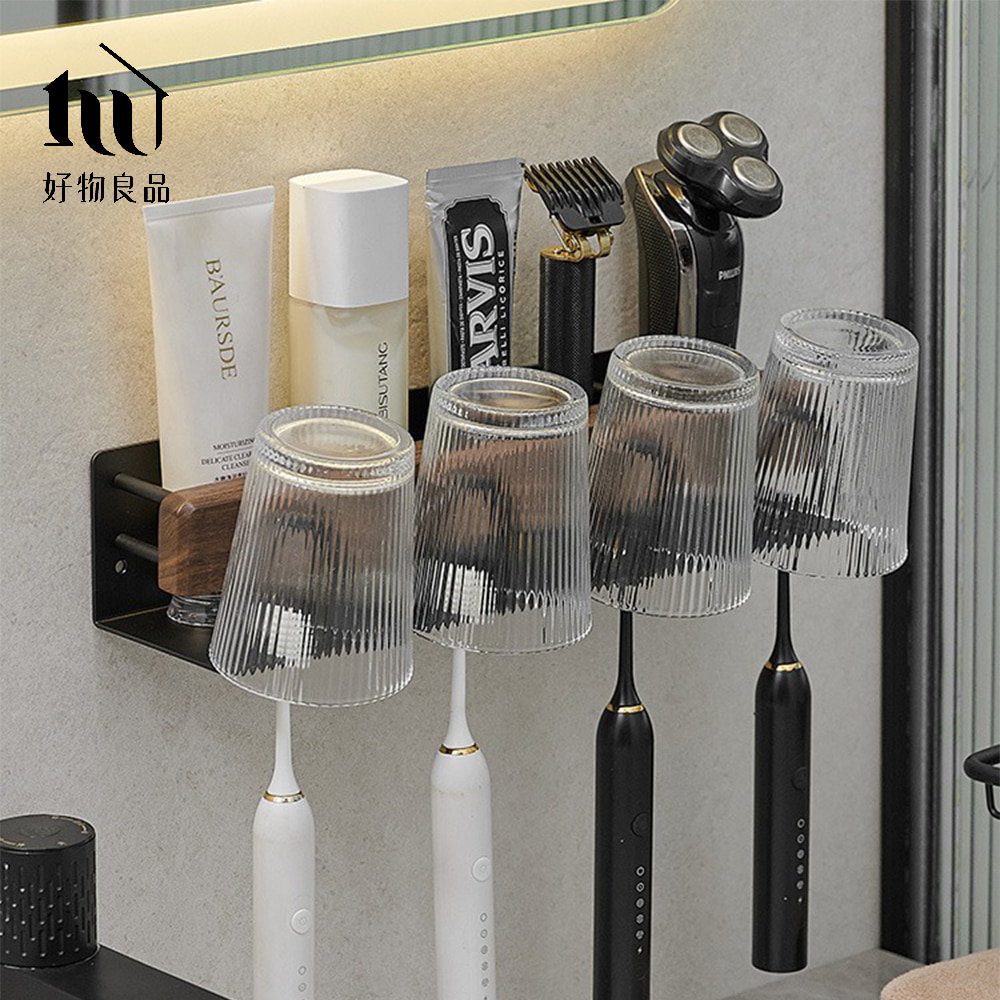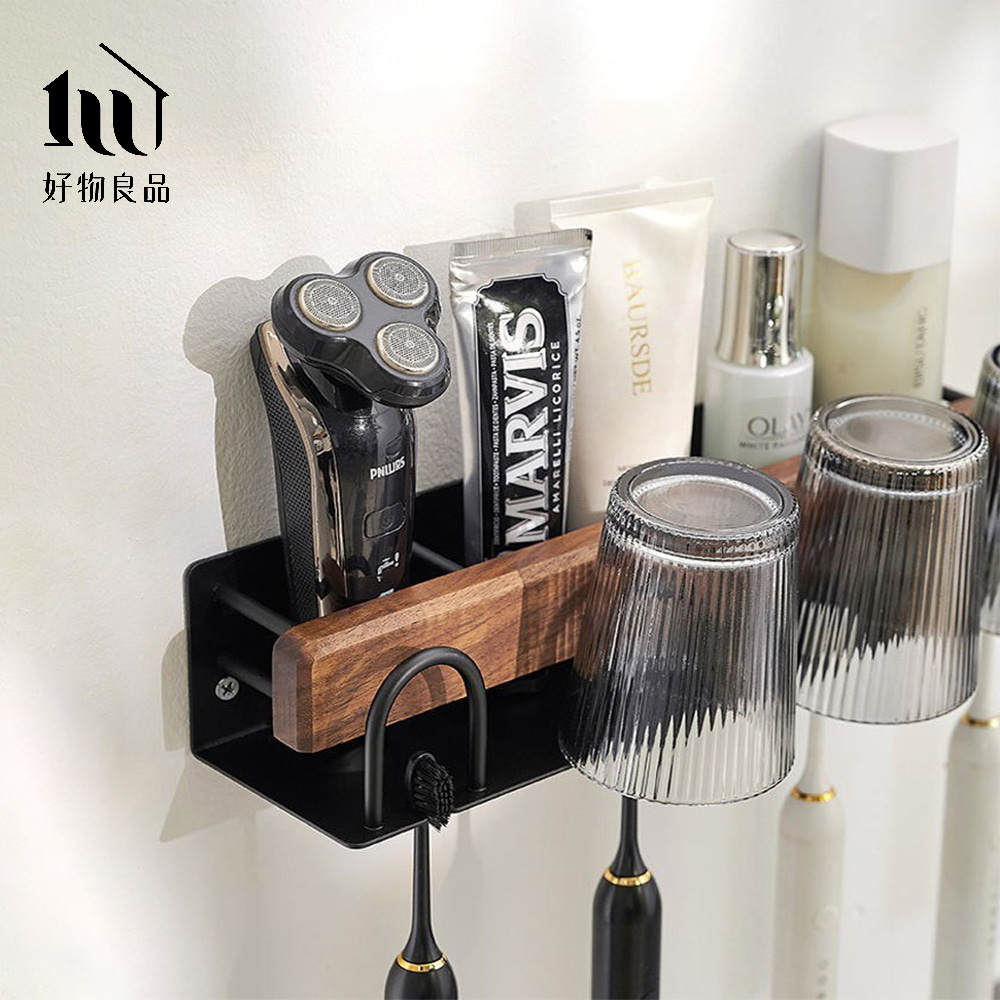 浴室防水防鏽原木牙刷漱口杯置物掛架