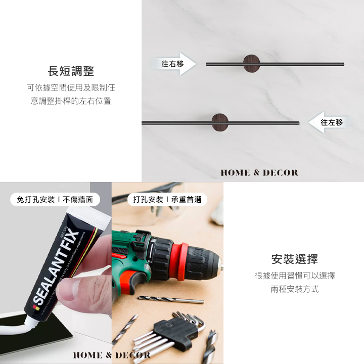 • 長短調整-可依據空間使用及限制任意調整掛桿的左右位置