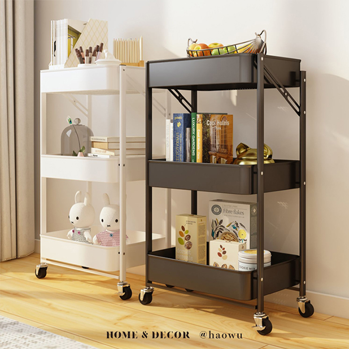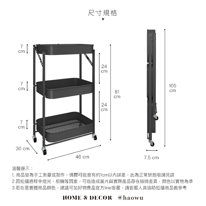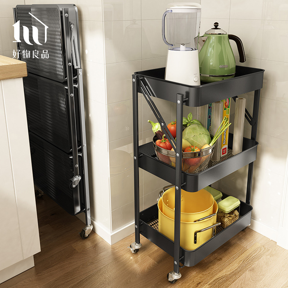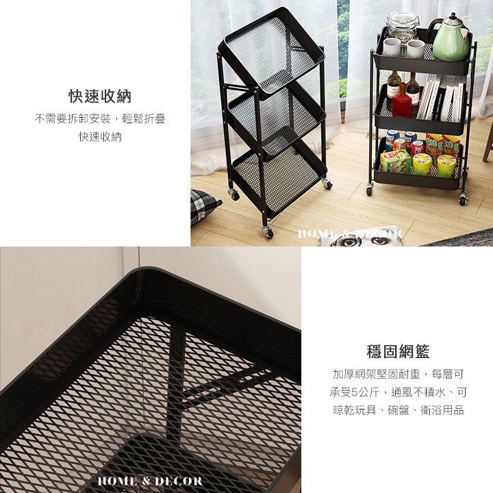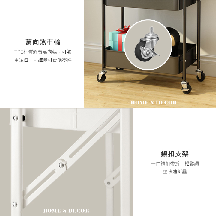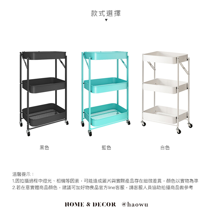 可煞車萬向輪折疊收納置物三層推車