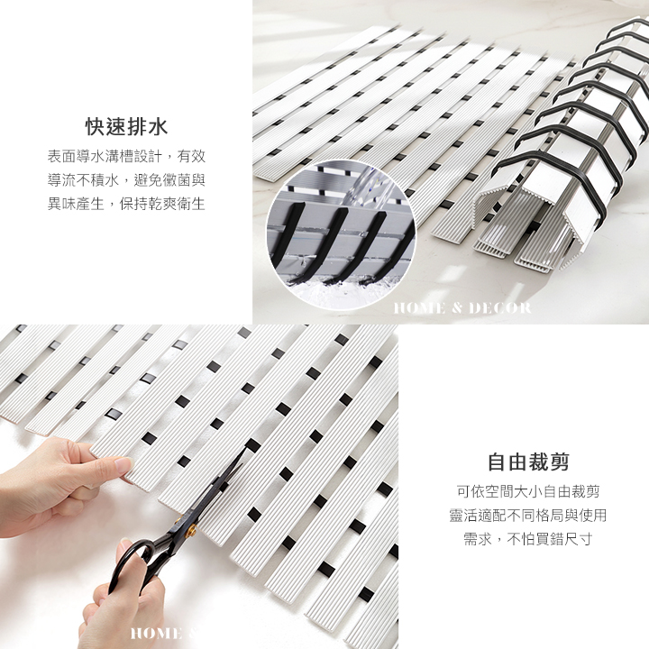 • 快速排水-表面導水溝槽設計,有效導流不積水,避免黴菌與異味產生,保持乾爽衛生。