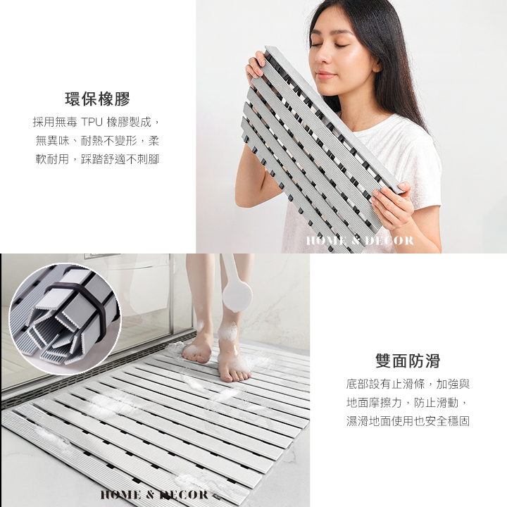 • 雙面防滑-底部設有止滑條,加強與地面摩擦力,防止滑動,濕滑地面使用也安全穩固。