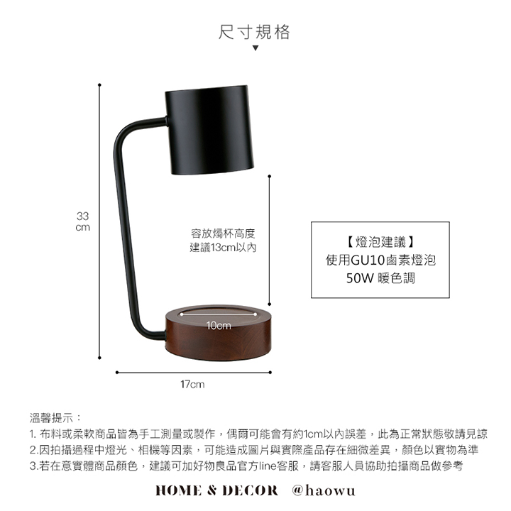 • 可升降功能-使用上,可用蠟燭範圍有更彈性的搭配,可依照個人喜好做不同程度的調整