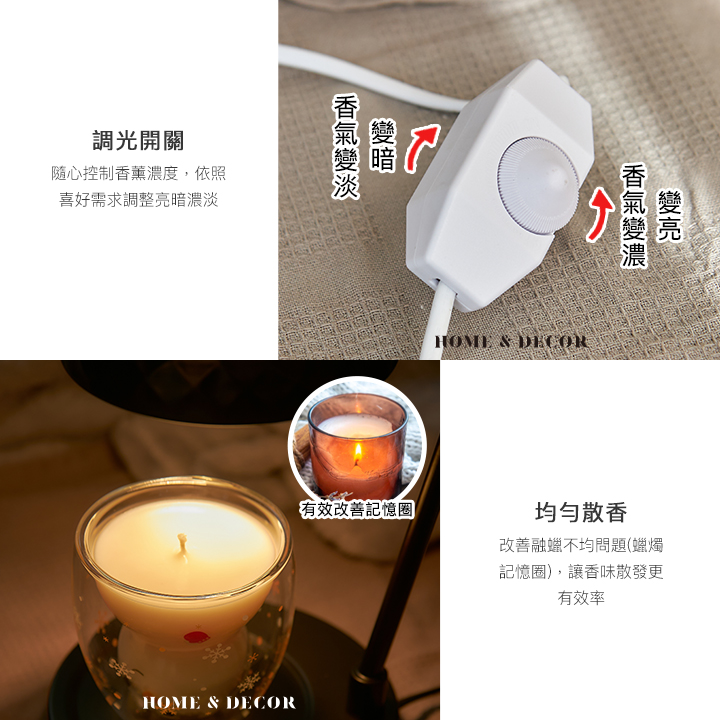 • 均勻散香-改善融蠟不均問題(蠟燭記憶圈),讓香味散發更有效率