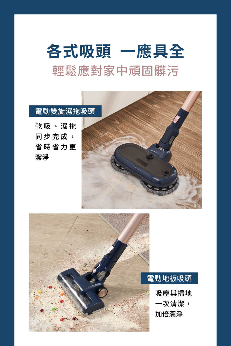 乾吸濕拖+多配件多角度除塵