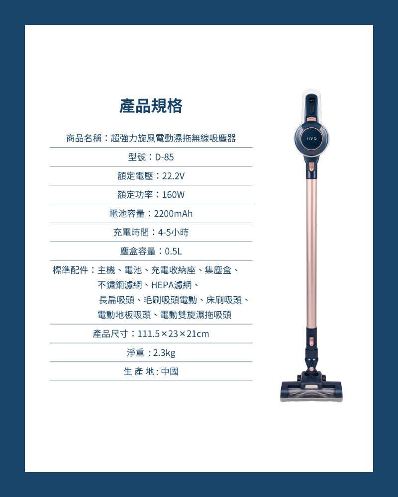 HYD 超強力旋風電動濕拖無線吸塵器 D-85A