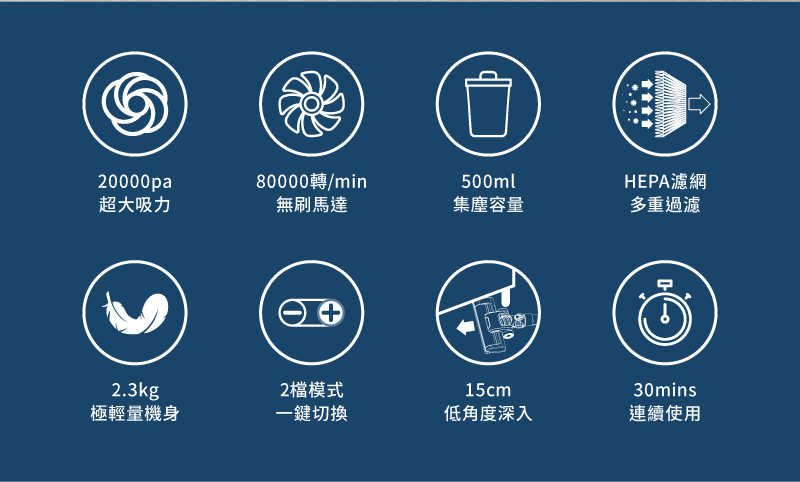 旋風除塵,超強吸力20000pa