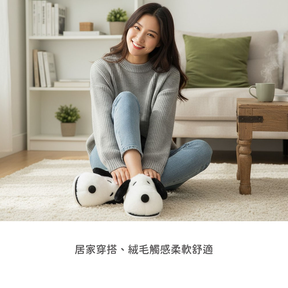 SNOOPY史努比 絨毛造型止滑氣墊拖鞋