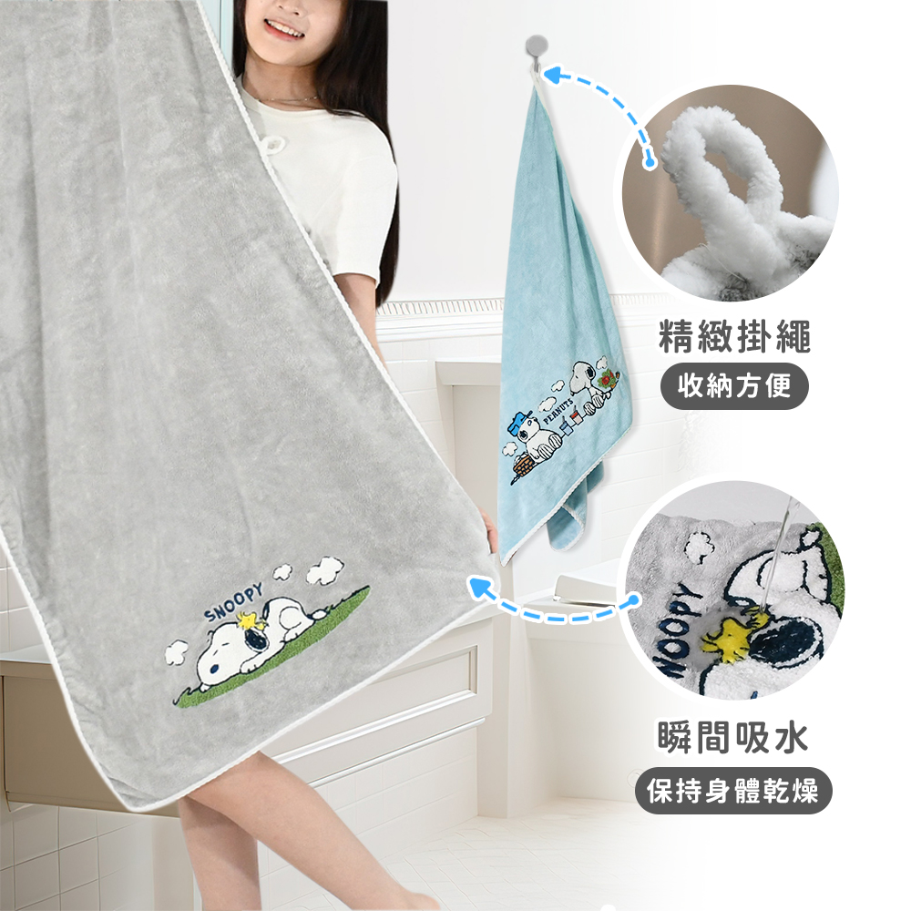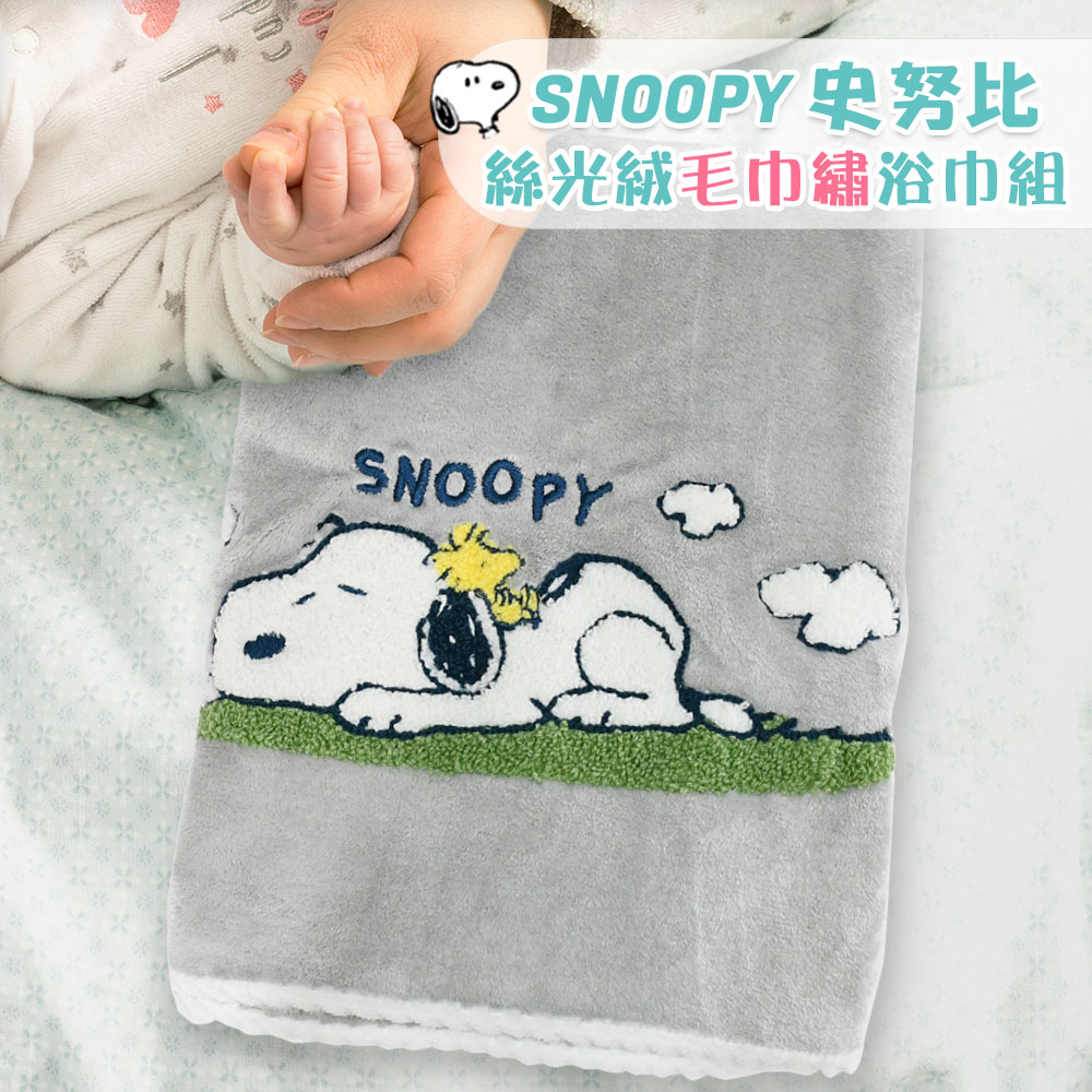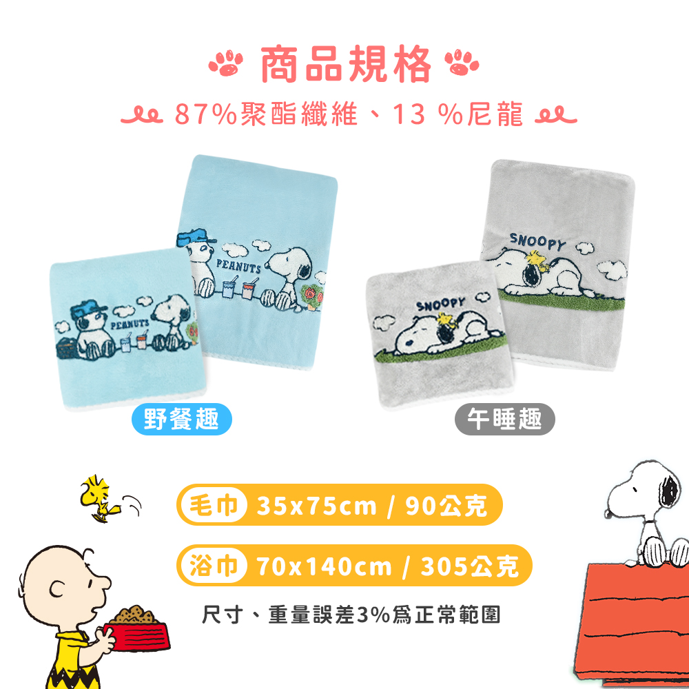 SNOOPY史努比 絲光絨毛巾繡浴巾-野餐去