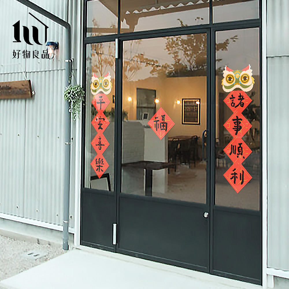 對聯款《平安喜樂》新春過年節慶玻璃門窗靜電窗貼