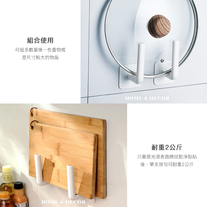 • 耐重2公斤-只要是光滑表面擦拭乾淨黏貼後,單支掛勾可耐重2公斤