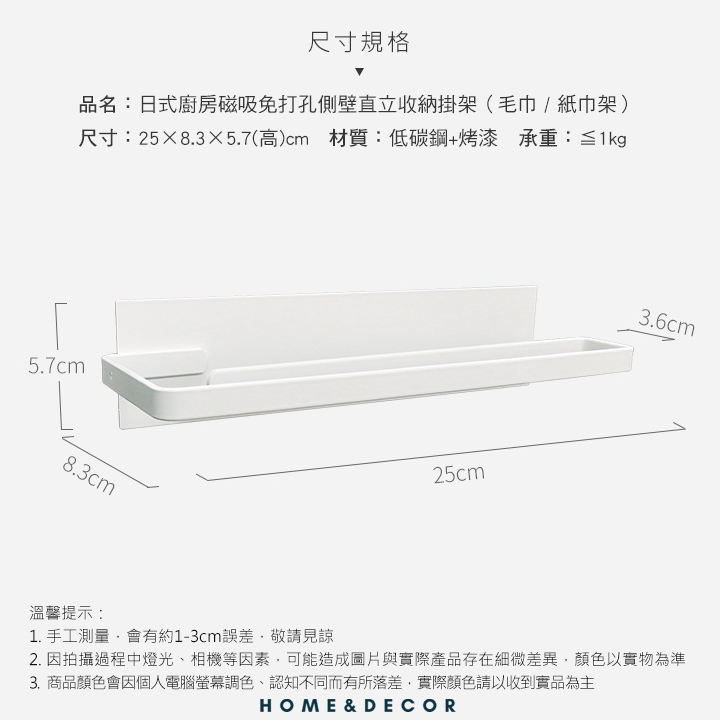 日式廚房磁吸免打孔側壁直立收納掛架-毛巾/紙巾架