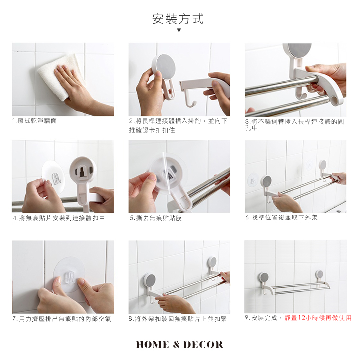 • 無痕安裝-使用強力掛勾黏貼,堅固耐久不易脫落