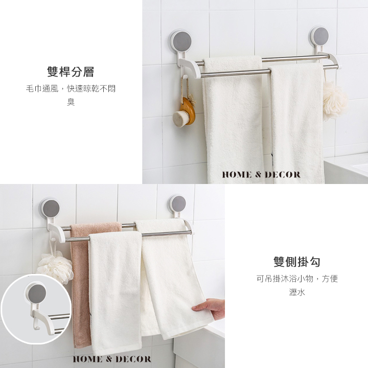 • 雙桿分層-毛巾通風,快速晾乾不悶臭