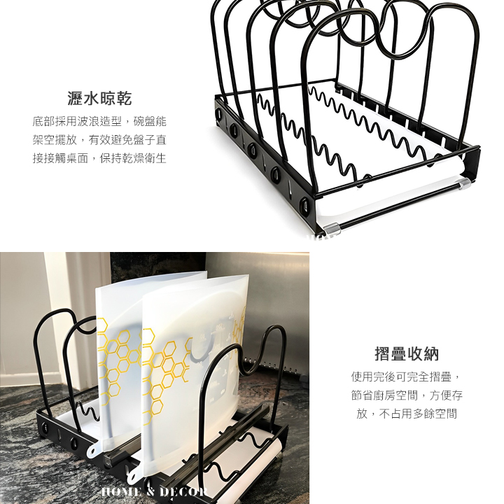 • 瀝水晾乾:底部採用波浪造型,碗盤能架空擺放,有效避免盤子直接接觸桌面,保持乾燥衛生。