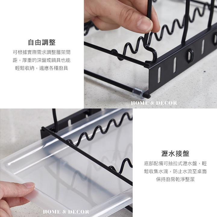 • 自由調整:可根據實際需求調整層架間距,厚重的深盤或鍋具也能輕鬆收納,適應各種廚具。